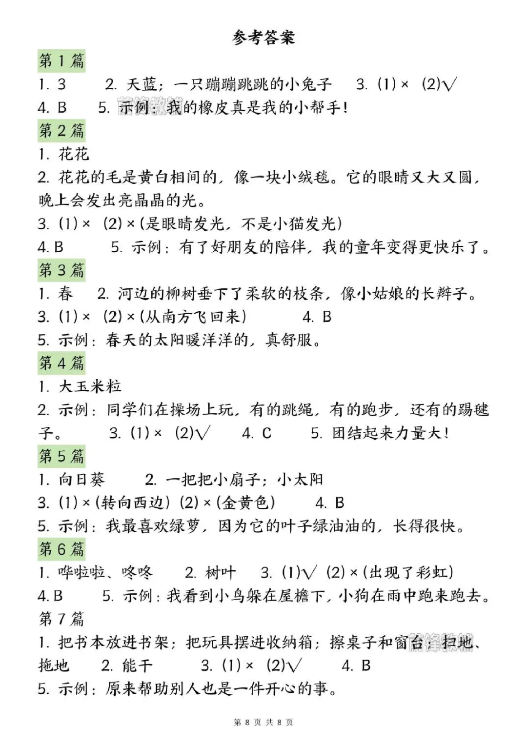 一年级语文课外阅读理解寒假提升训练|电子版可打印
