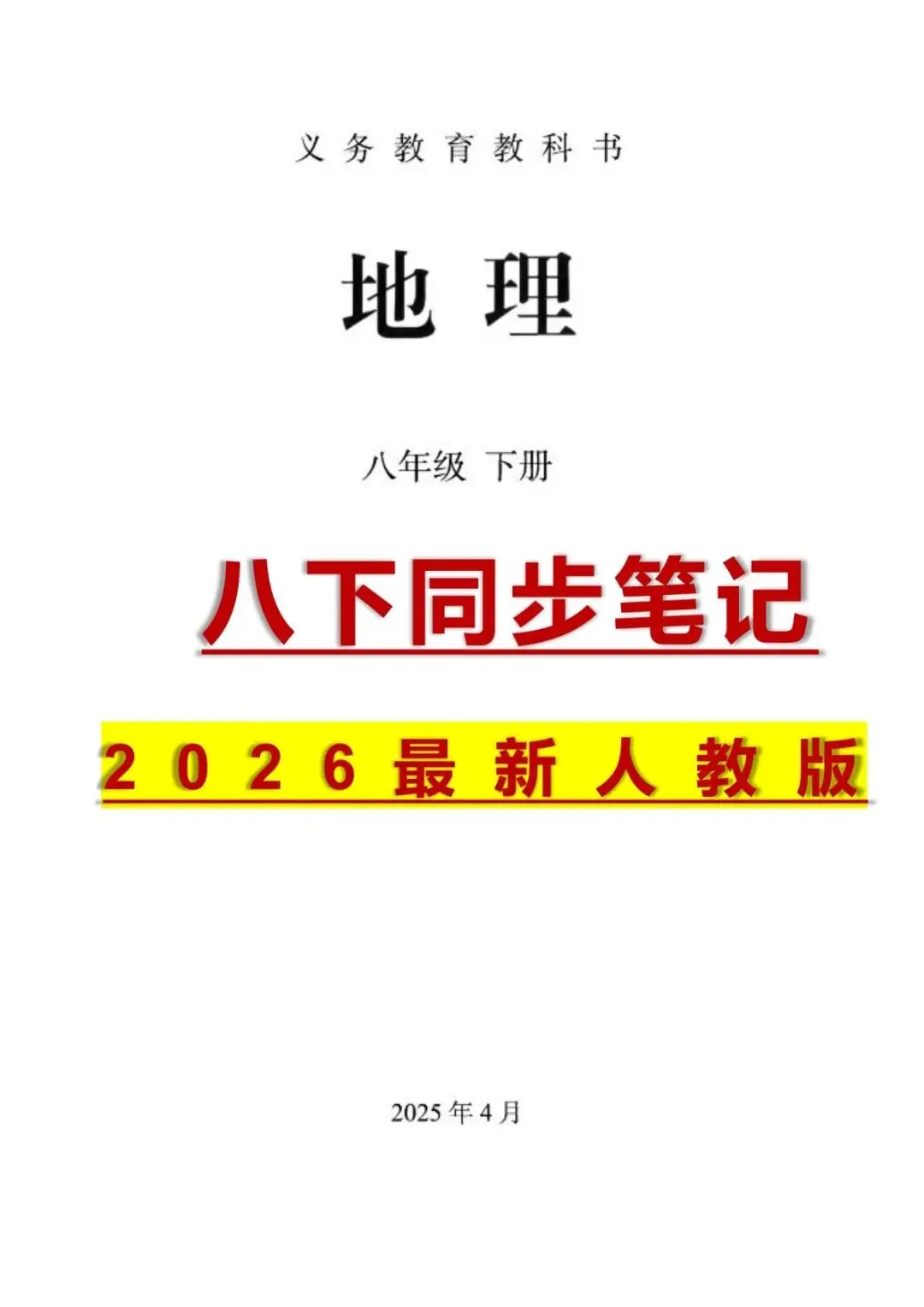 八年级下册地理同步课堂笔记 电子版可下载打印