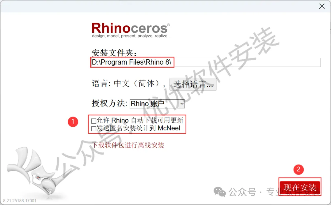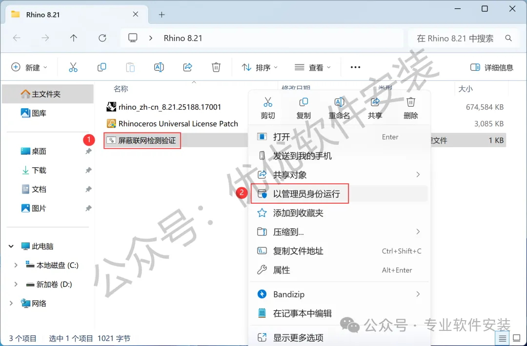 1、下载Rhino 8.21软件安装包到电脑上,右键选择【解压到Rhino 8.21\】