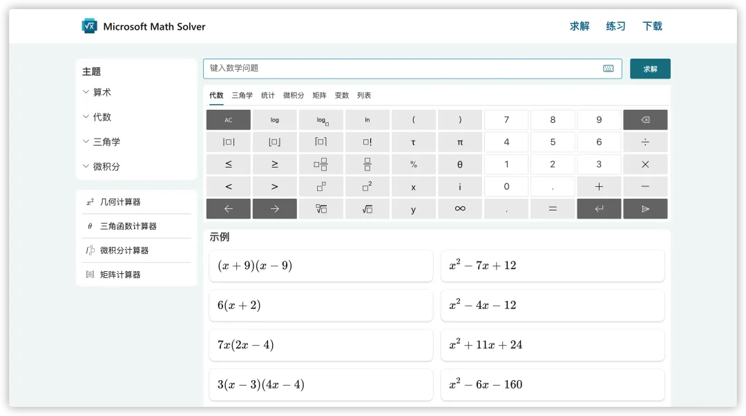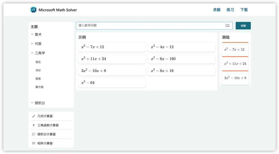 传送门:https://mathsolver.microsoft.com/zh