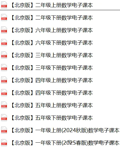 通过夸克和百度(可选)网盘分享的文件:小学1-6年级数学上下册(北京版)