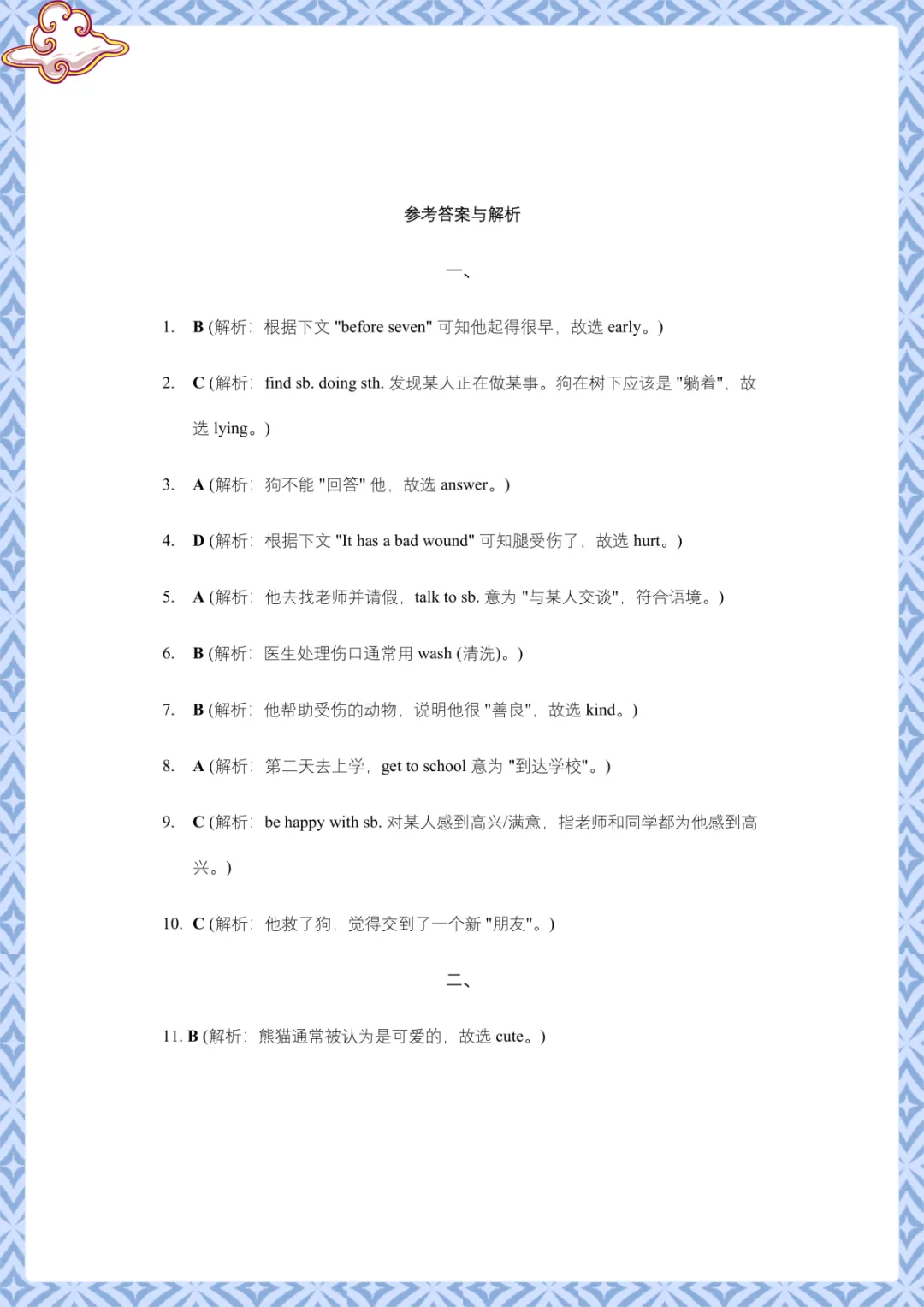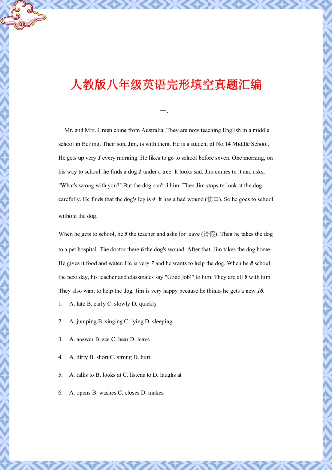 人教版八年级英语:完形填空真题汇编 电子版可下载打印