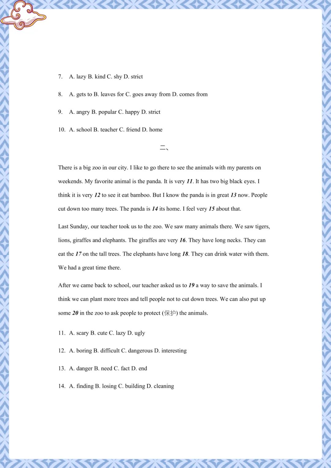 《完形填空专项训练》