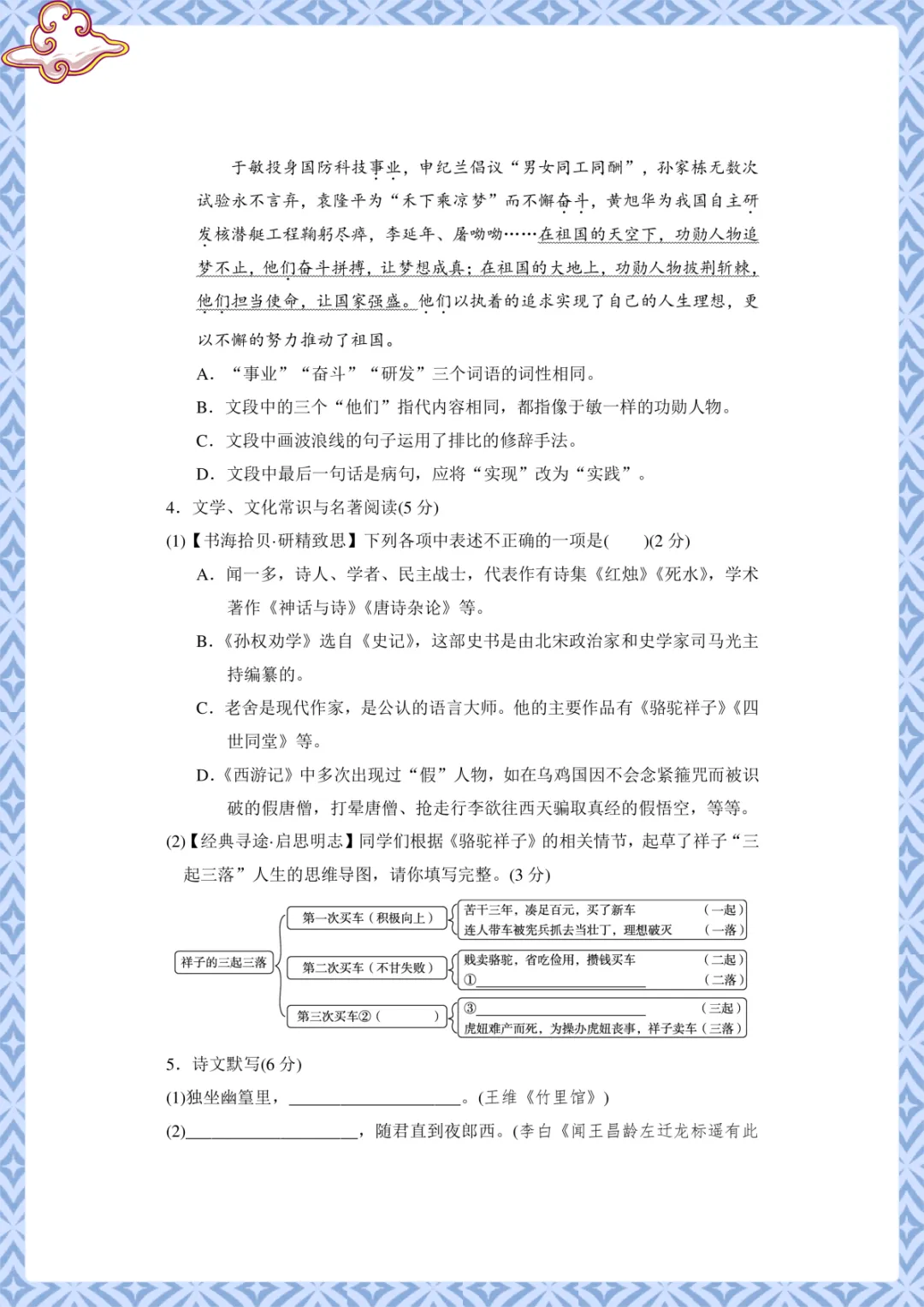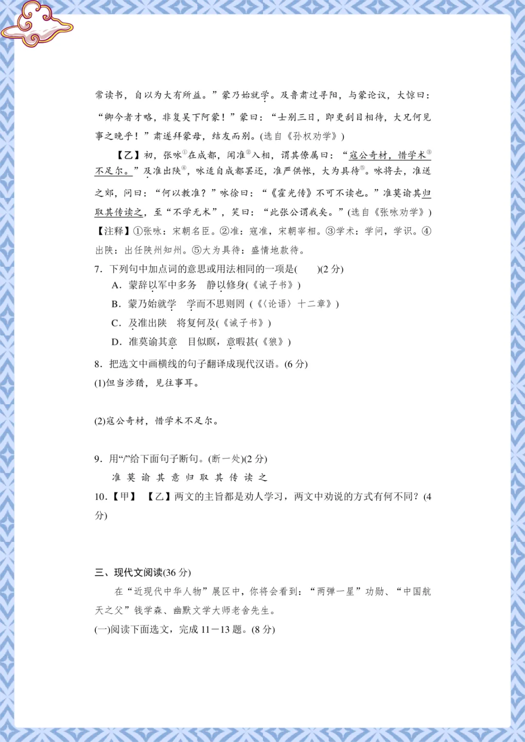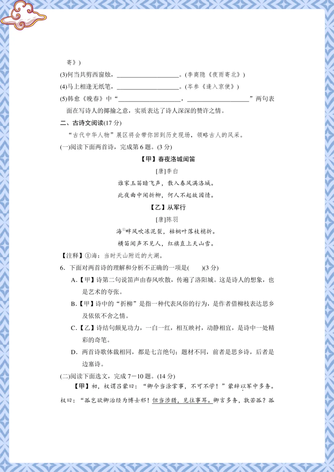 部编版七年级下册语文:第一单元测试卷(含答案)电子版可下载打印