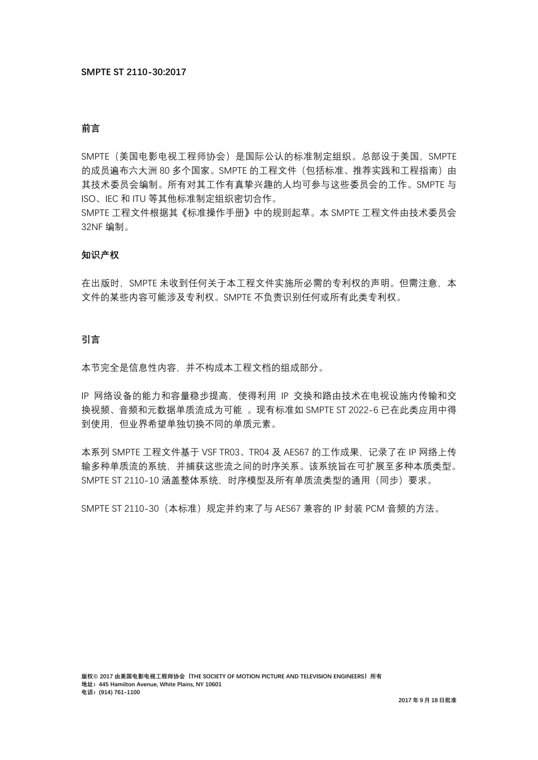 大家知道,2025年广电圈的所谓“8+1”设备更新项目,第一批的几个重点电视台都已经更新的自己的IP系统。在目前SMPTE 2110协议成为公认标准的情况下,对于标准的了解是掌握IP系统架构和使用方法的基础。希望这个公众号的文章可以为大家了解和熟悉协议有一些帮助。前面一篇文章是SMPTE 2110-20标准的翻译,所谓音视频不分家,音频的标准也放出来供大家参考。其实SMPTE 2110-30的标准没有什么太实质性的内容,大部分细节AES67的标准文档已经做了描述,彩条君也在考虑把AES67的标准翻译一下,具体时间待定…
