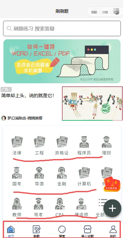 功能冗余,实用性不足(针对纯刷题考生):因其主打“课程+刷题”双核心,内置大量与课程相关的功能模块,对于只需要单纯刷题、不打算买课程的考生来说,这些冗余功能不仅占用手机内存,还会影响刷题体验,操作起来不够简洁,实用性大打折扣。