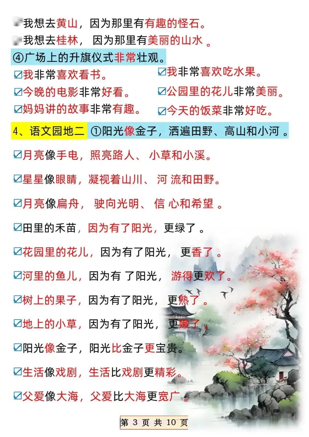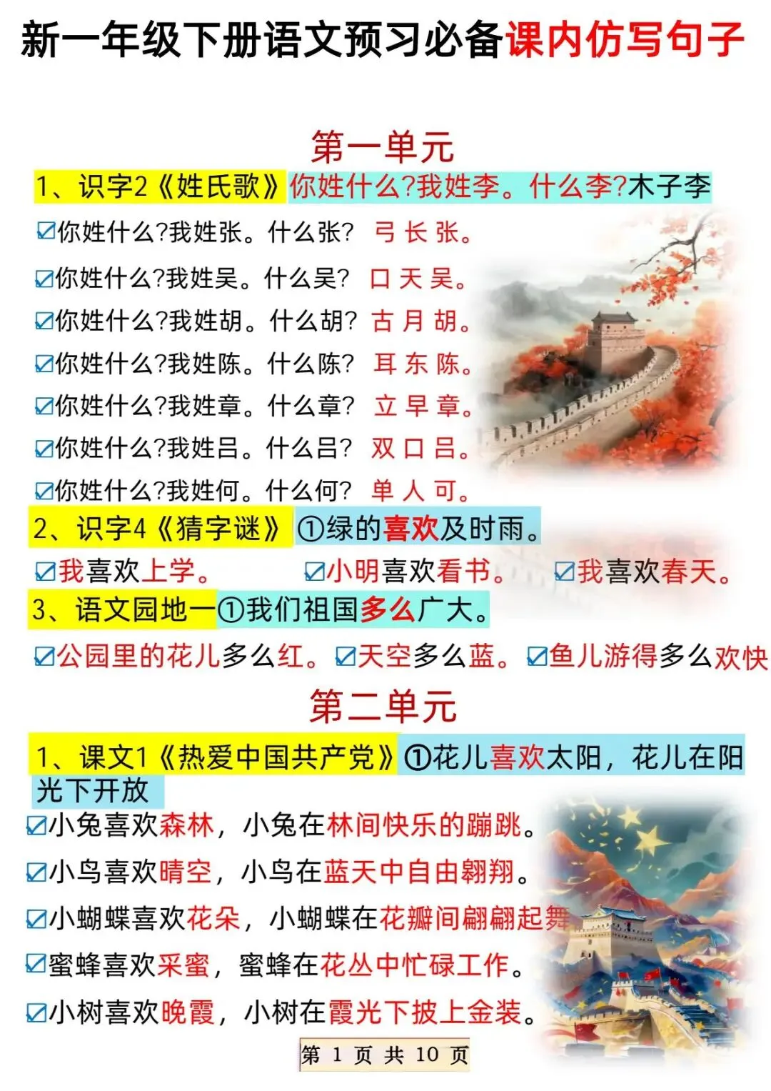 新一年级下册语文预习必备课内仿写句子,电子版可打印