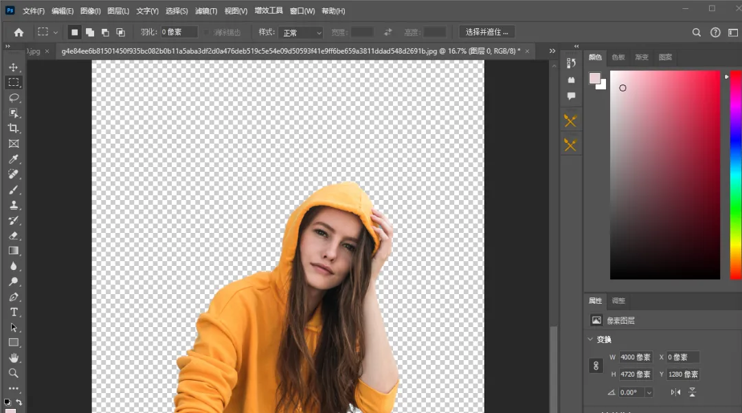 最后抠像完成,菜单栏文件-保存并应用,即可跳转回 PS 界面,抠图完成。