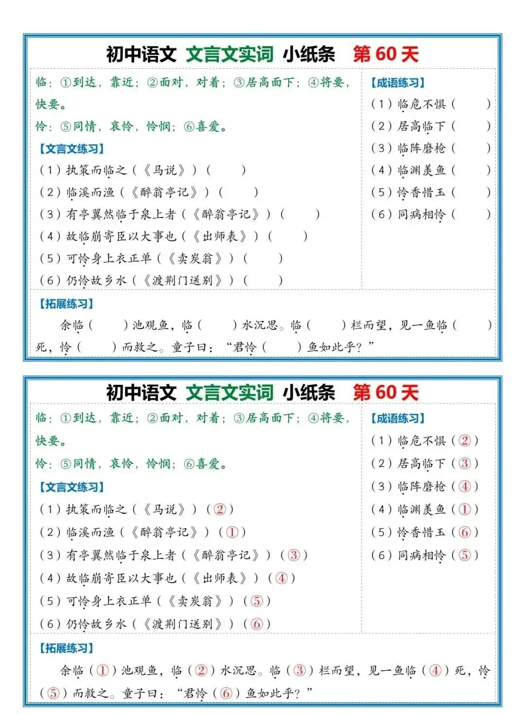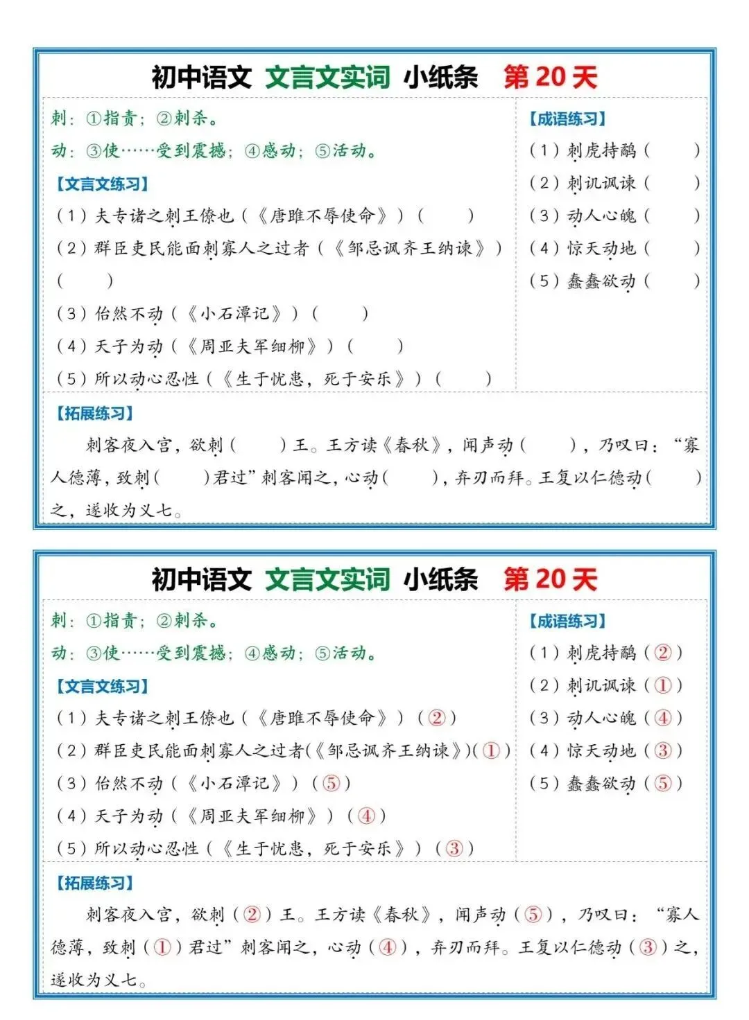 初中《文言文小纸条》 | 可打印