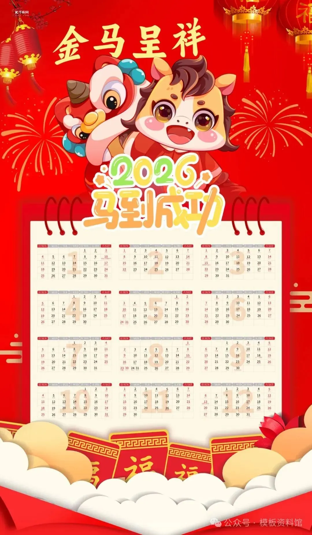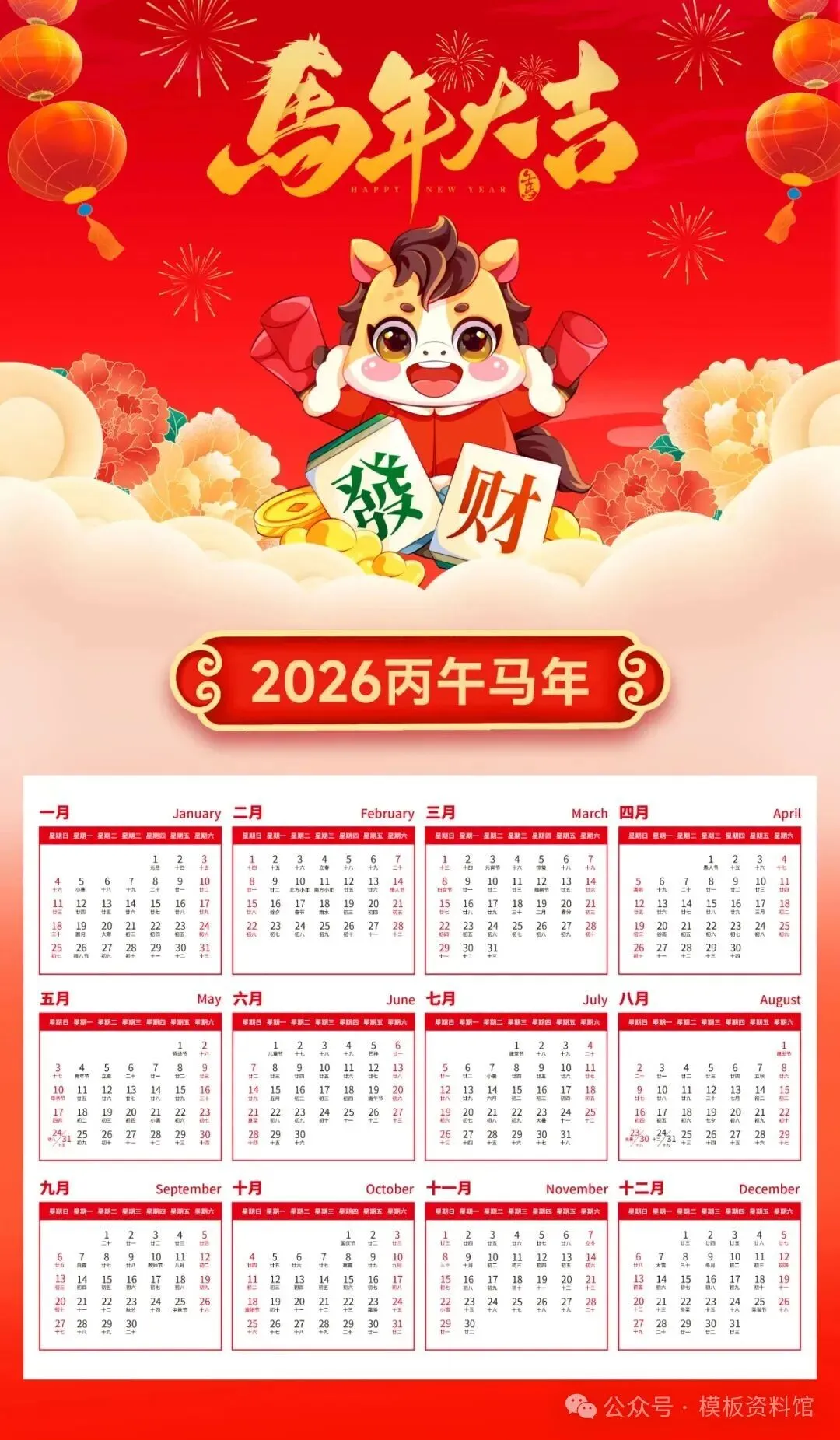 2026马年日历表,高清可打印(附电子版、下载)