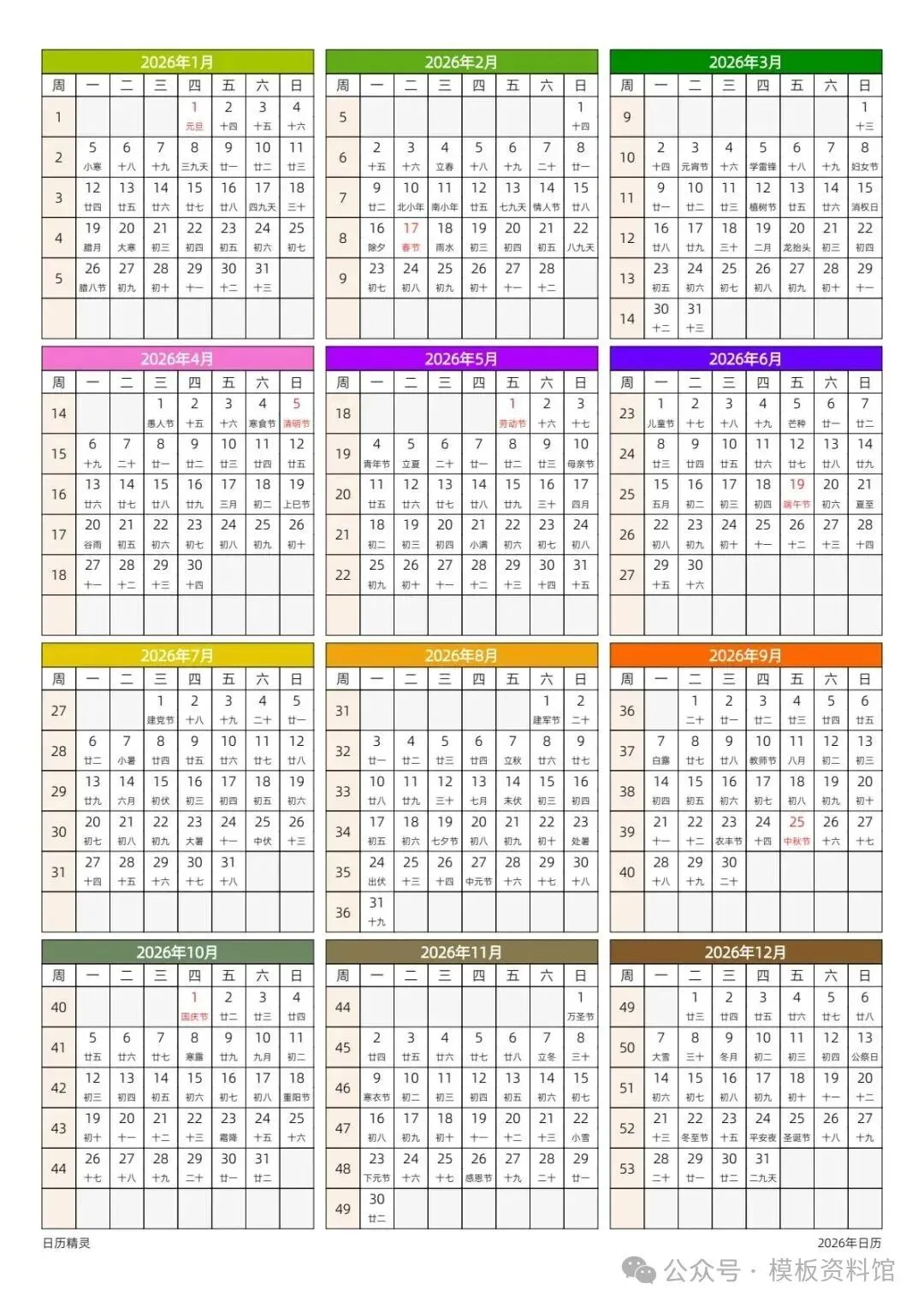 今天分享的是《2026年日历》高清电子版