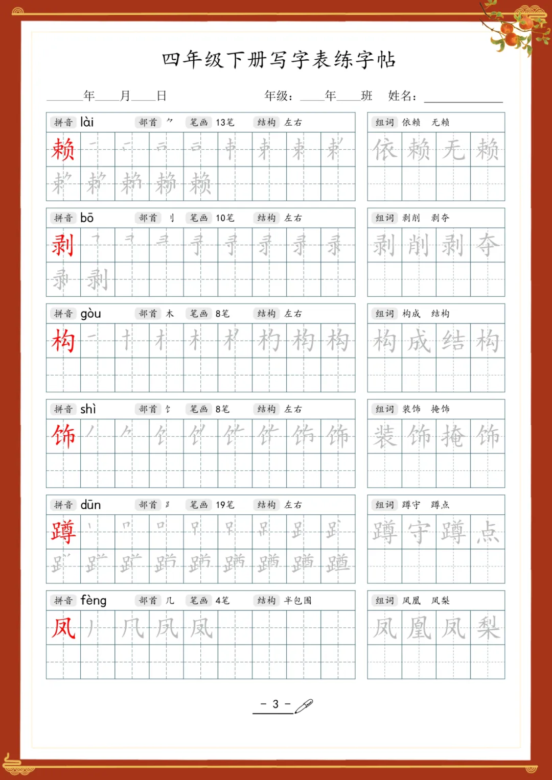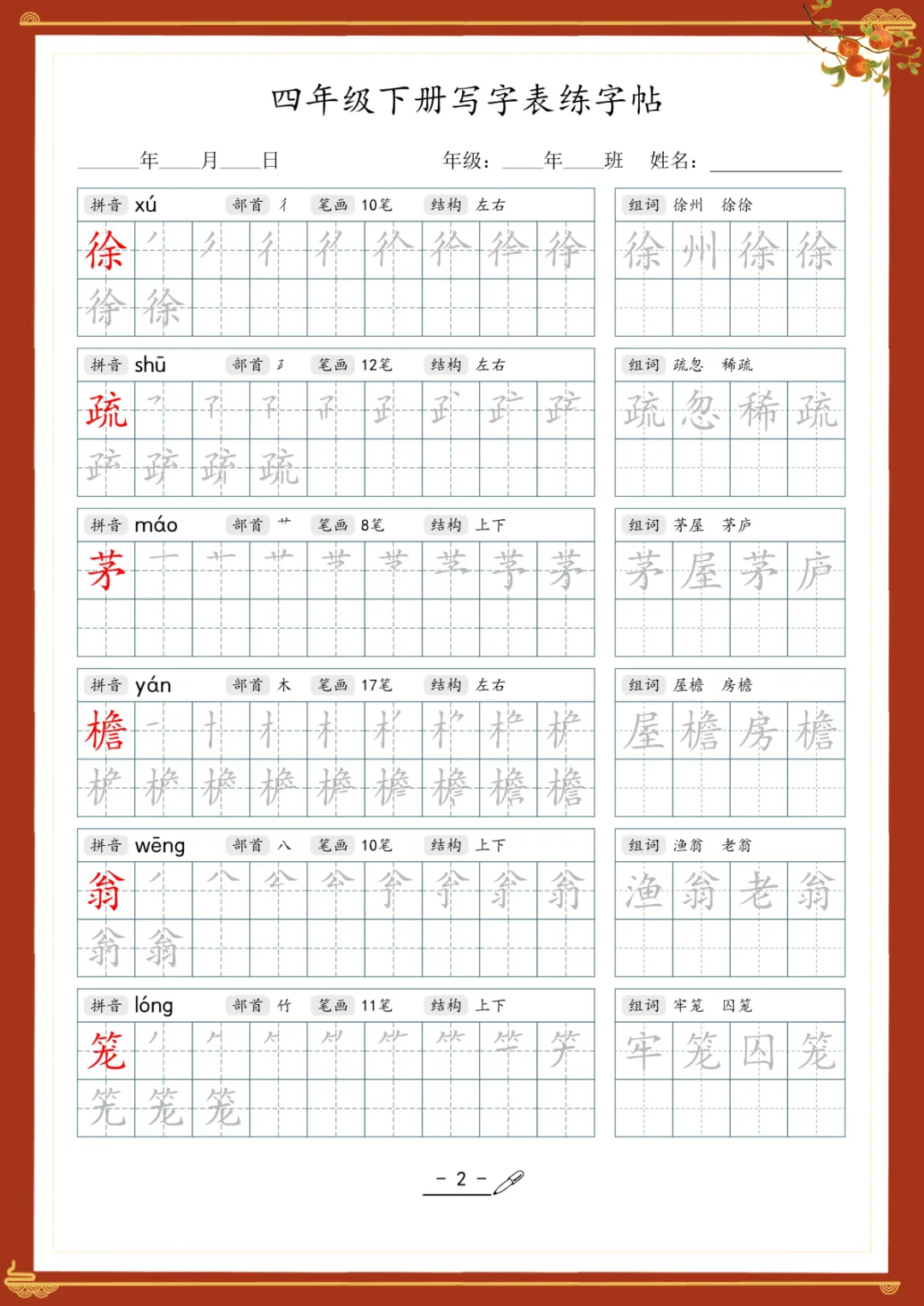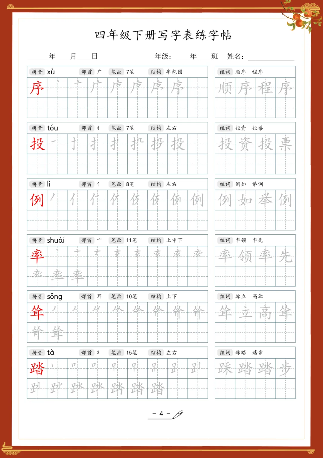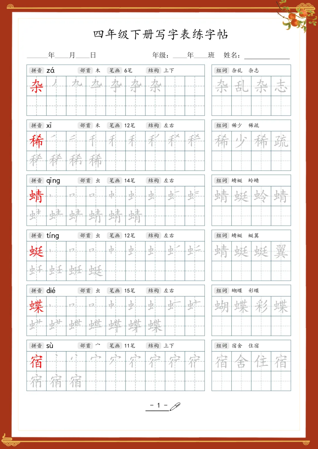 《写字表专项训练》