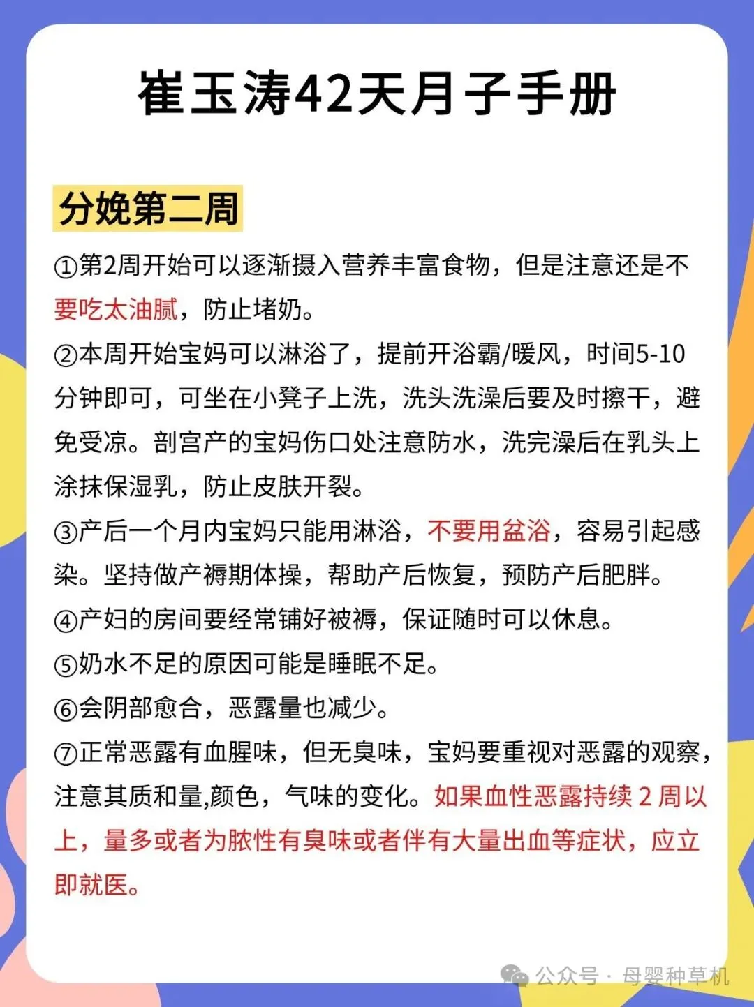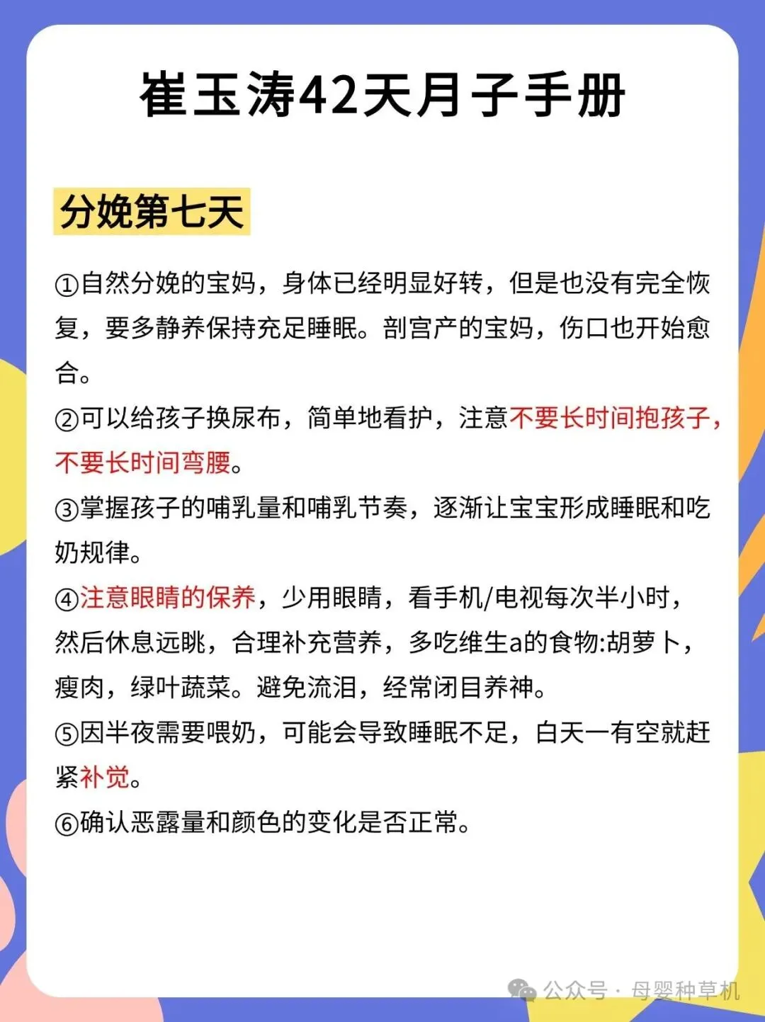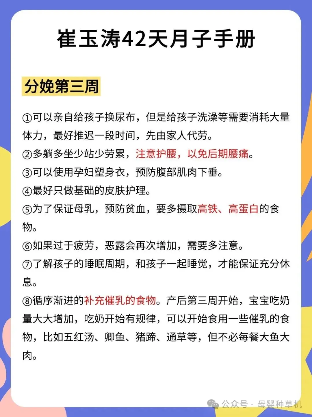 我们特意整理了一份由崔玉涛推荐的42天科学月子攻略,