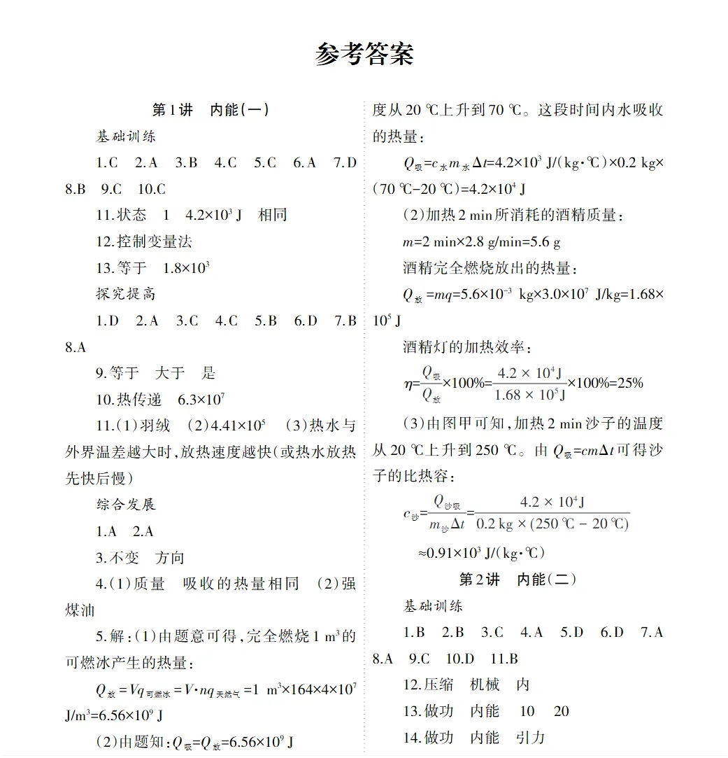 【2025】最新版1-9年级《寒假作业》参考答案