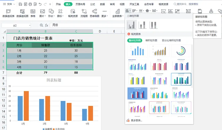 用WPS重叠柱形图完美表现目标值和实际完成值关系
