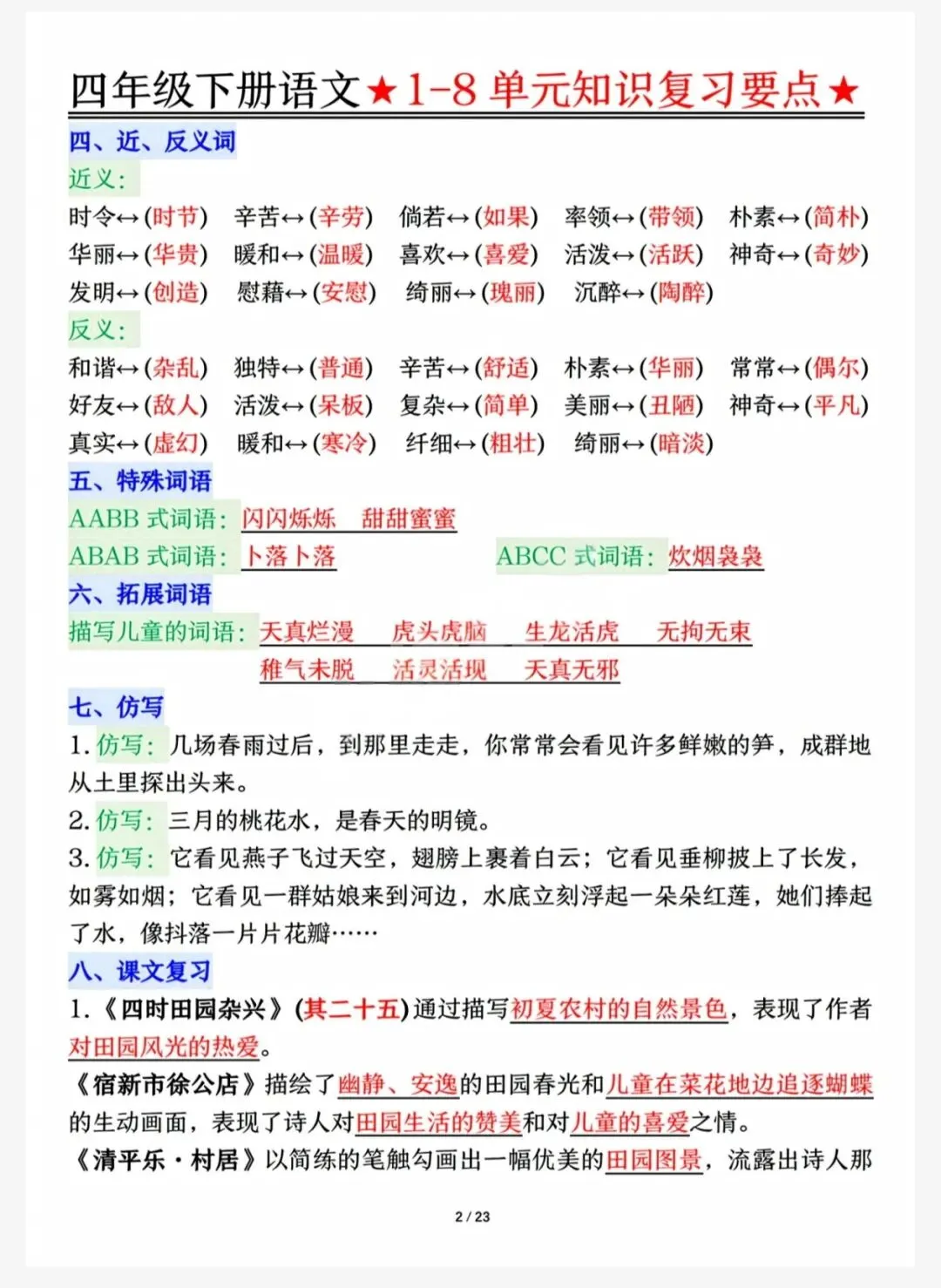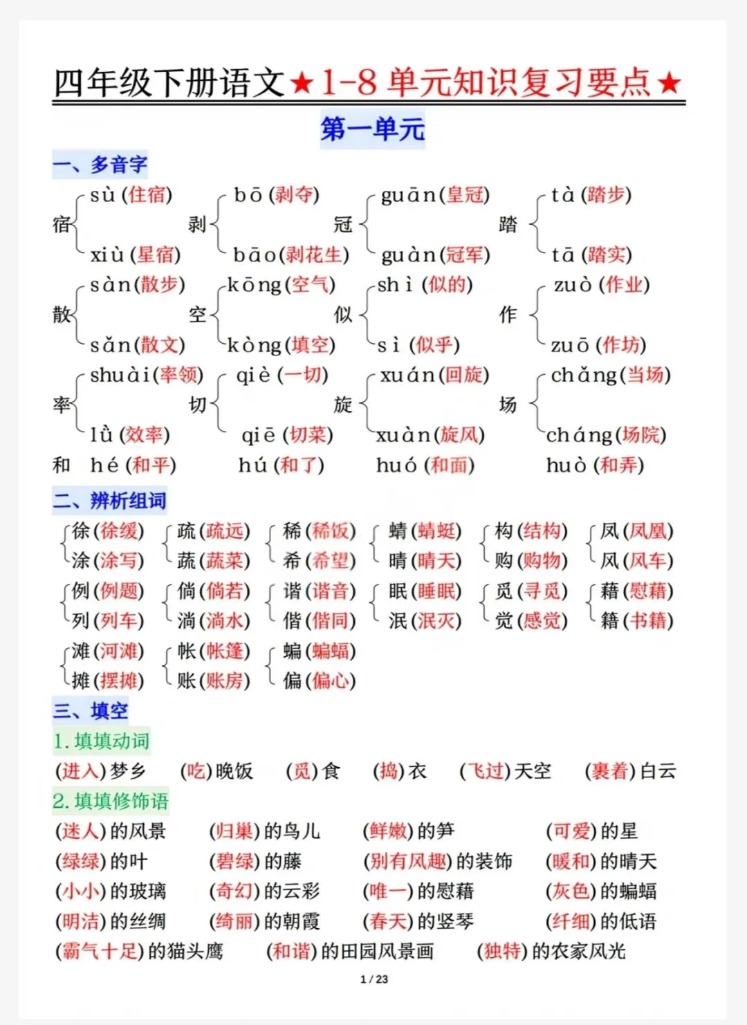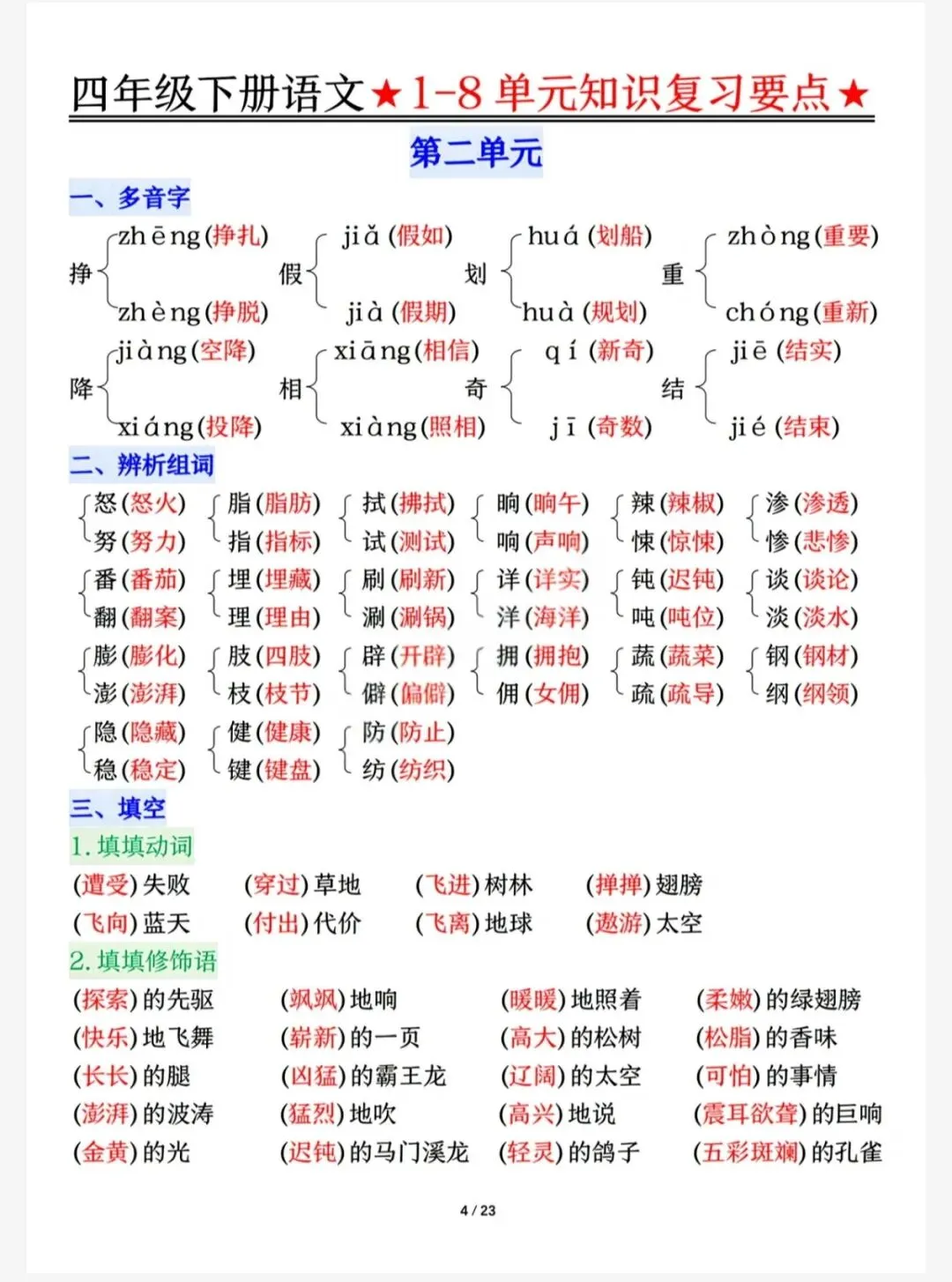 2026年最新|四年级下知识点(可下载,打印)