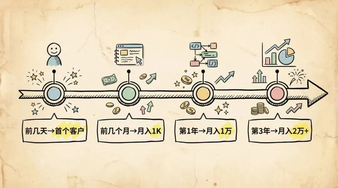 第 3 年:持续跟用户聊天、收集反馈、迭代产品、做内容营销,月入 2 万+