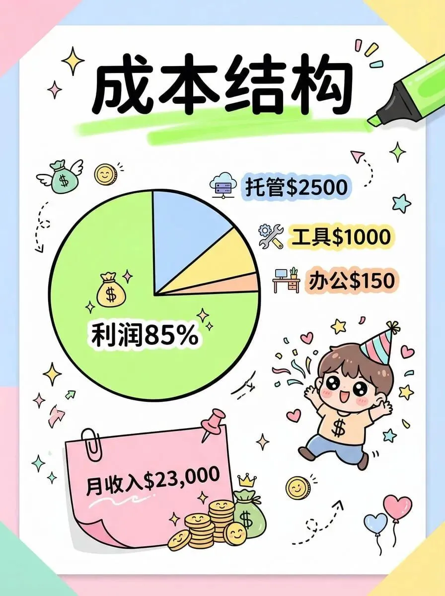 月收入 2.3 万,成本 3650,利润率 85%。