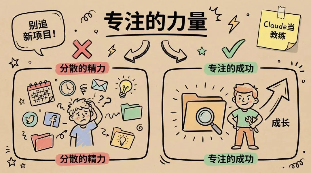 现在他有个很奇葩的方法:每次想分心,就去跟 Claude 聊天,让它当 商业教练 ,劝自己专注在正事上。
