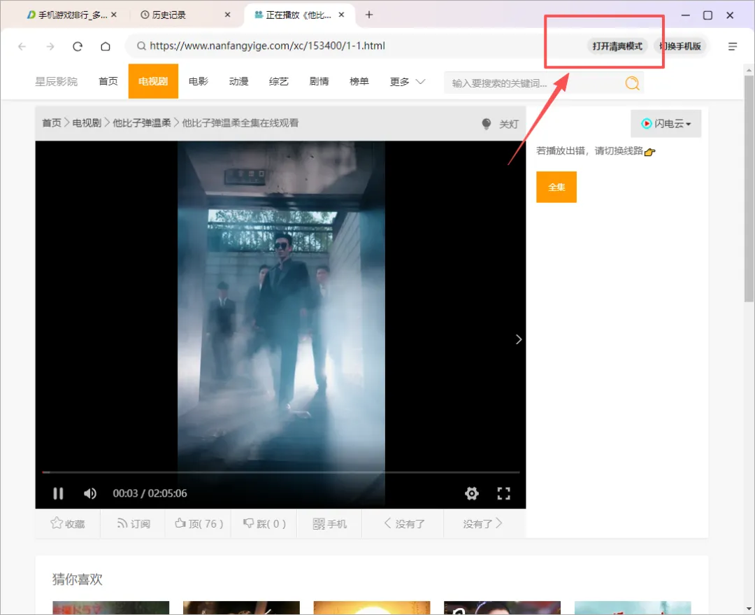 5、此处开启清爽模式,自动屏蔽弹窗广告