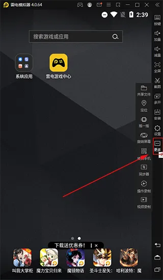 6、在模拟器当中右侧栏有着许多实用的功能,点击更多还可显示更多的实用功能