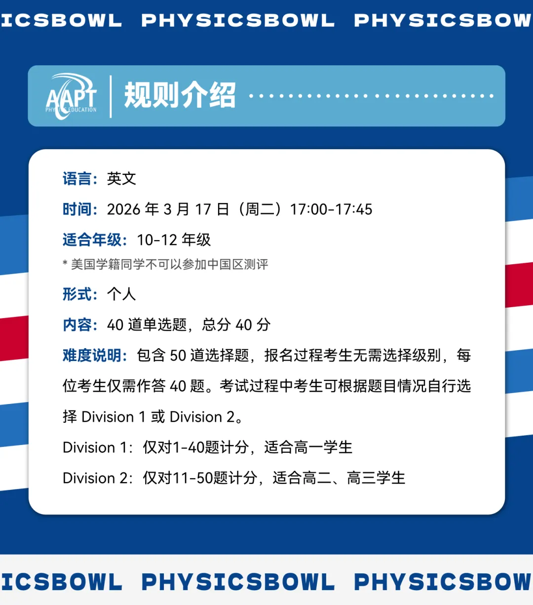 2026年物理碗竞赛报名已开启,距离正式考试(3月17日)仅剩下一个月!