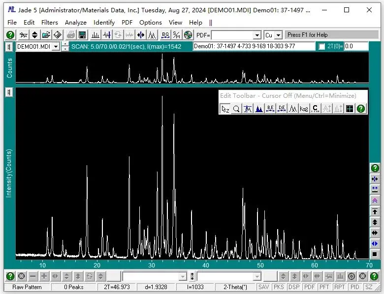 jade5.0是mdi jade软件的经典版本,也是一款专门用于XRD分析的实用软件,通过此软件,可以计算物质质量分数,计算结晶化程序,计算晶粒大小及微观应变,计算点阵常数,计算残余应力等,从而更好的对材料进行X射线衍射,分析其衍射图谱,获得材料的成分、材料内部原子或分子的结构或形态等信息。另外新版本的mdi jade 5.0改进的四阶多项式和长滤波器峰值搜索算法,改进的搜索/匹配算法和新功能的显示,支持使用特定空间组和Miller索引约束的模式索引,改进了二进制文件的通用文件浏览器,改进了数据过滤功能等等,可以大幅度的提高用户的工作效率。