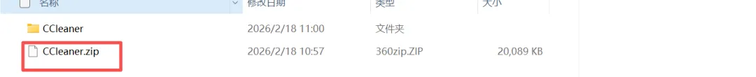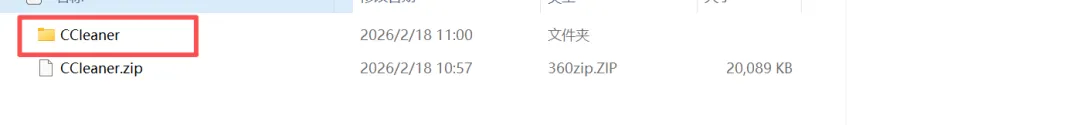1. 找到下载名为【CCleaner.zip】的压缩包,解压到当前文件夹:
