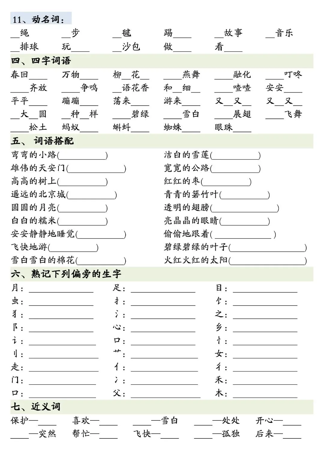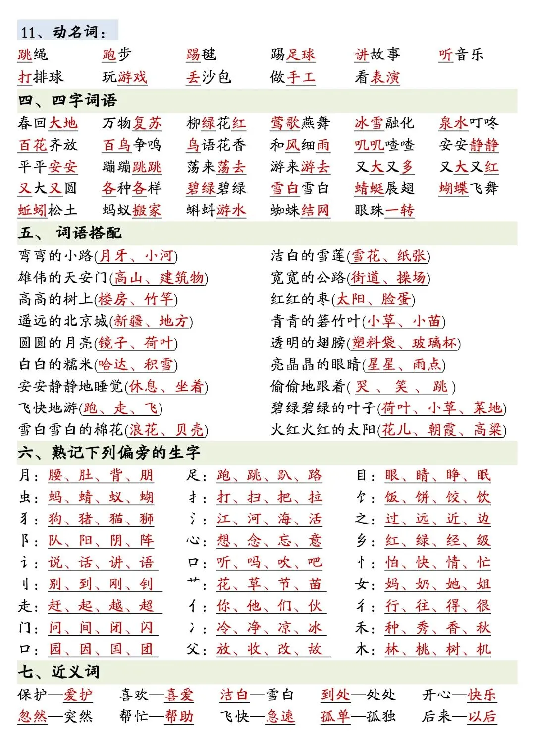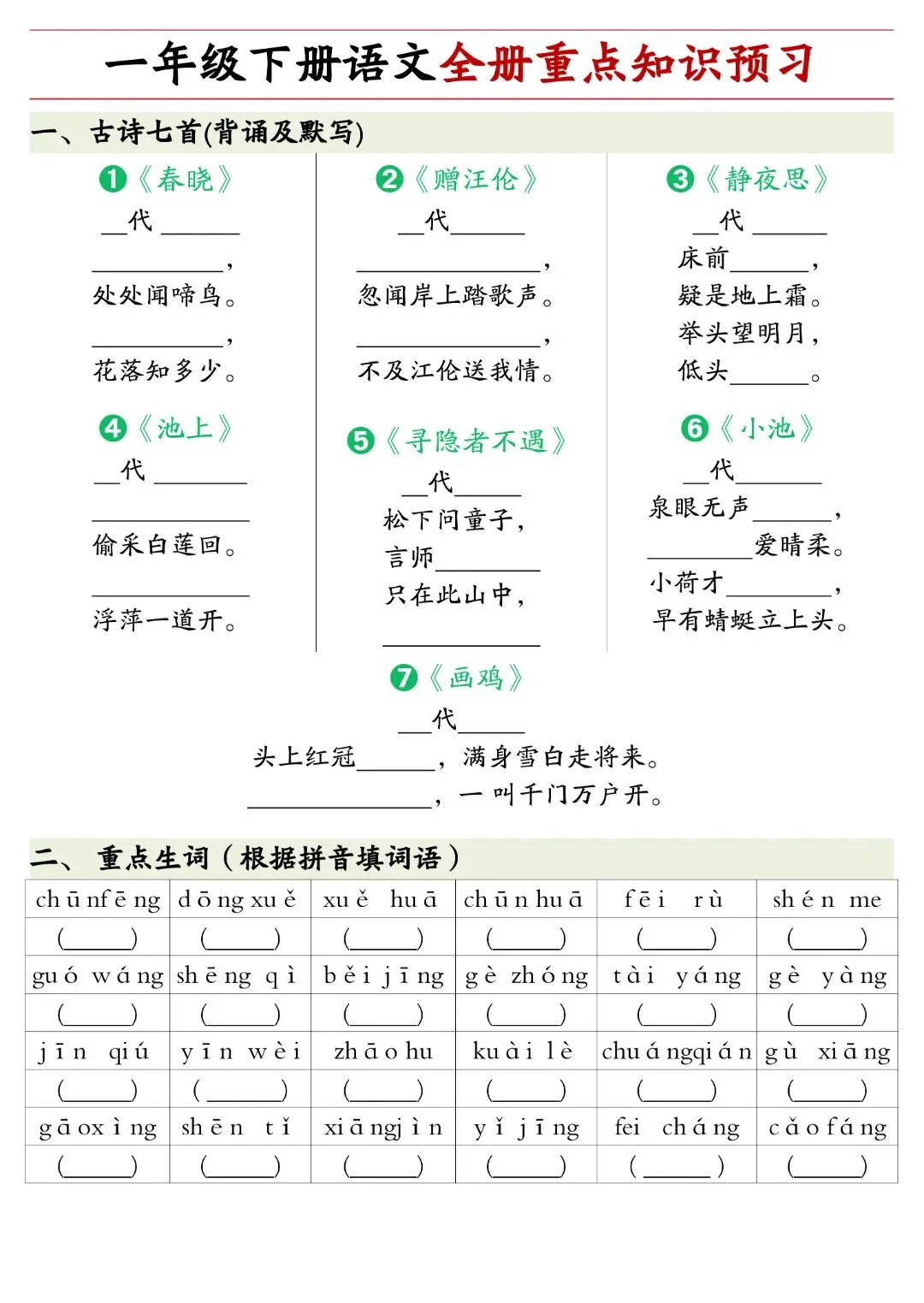 26春一年级下册人教部编版《寒假预习全册重点知识汇总》|完整可打印