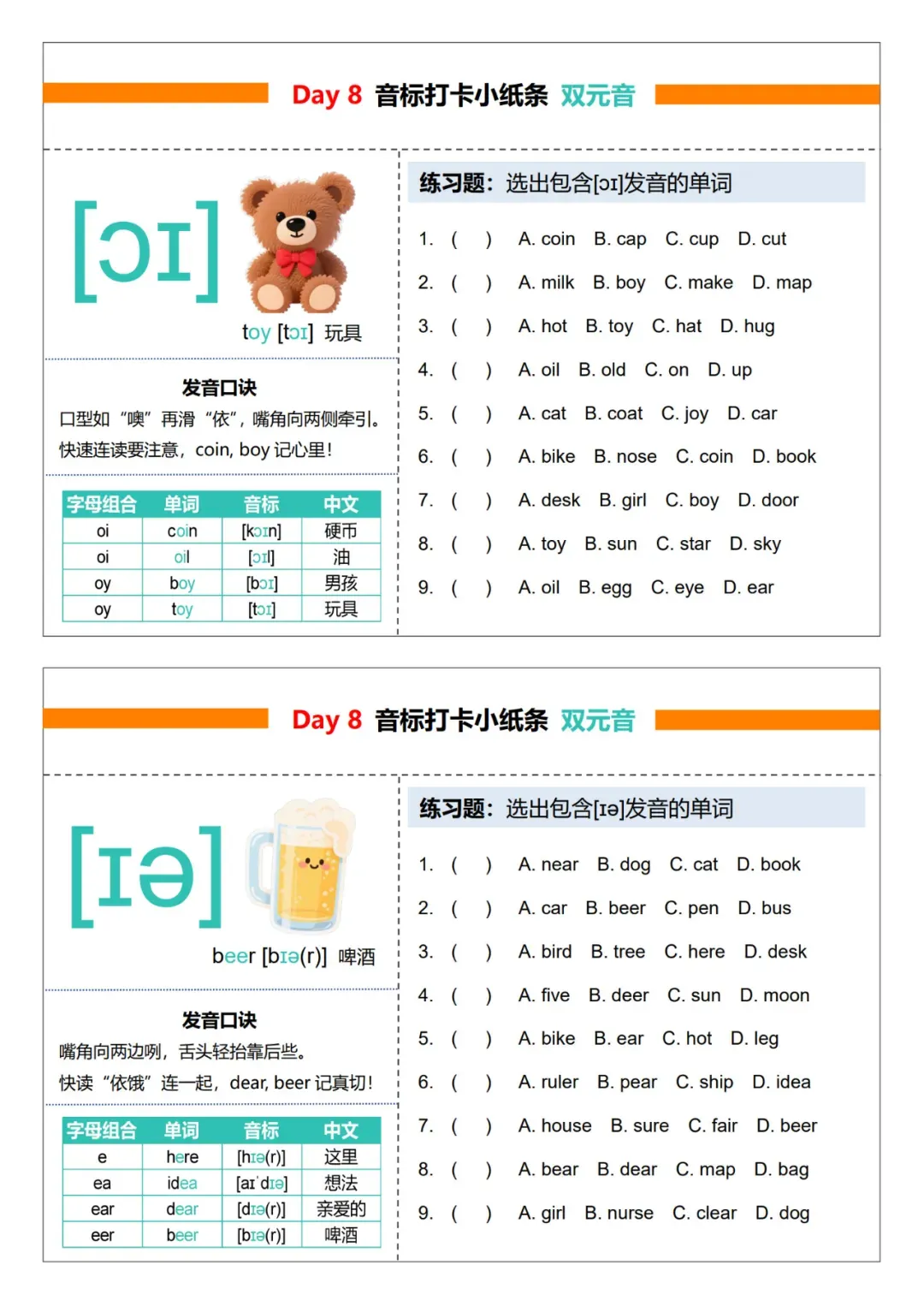 28天自学48个国际音标,含音频+视频,可免费下载打印