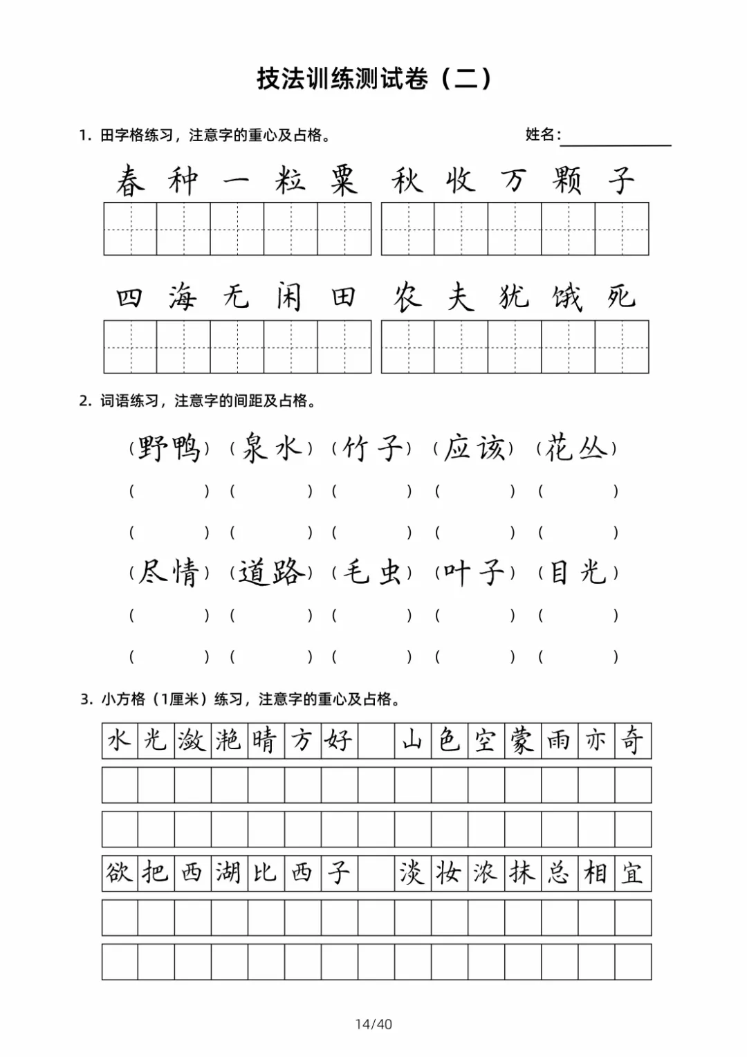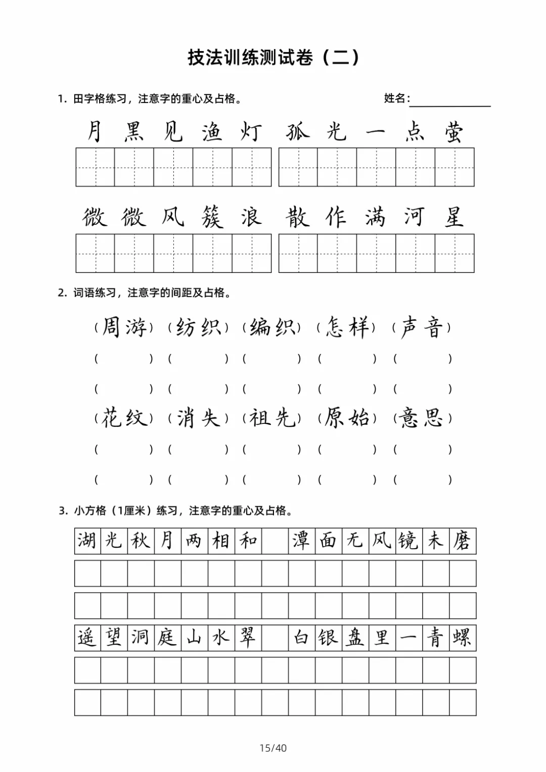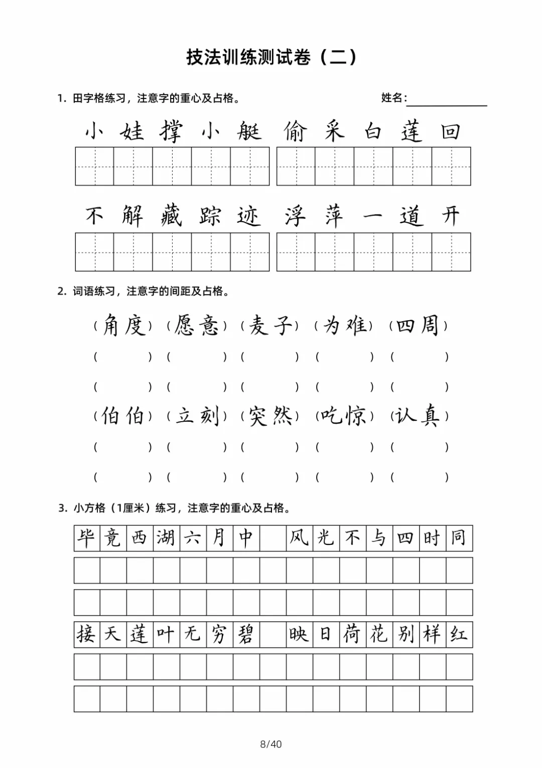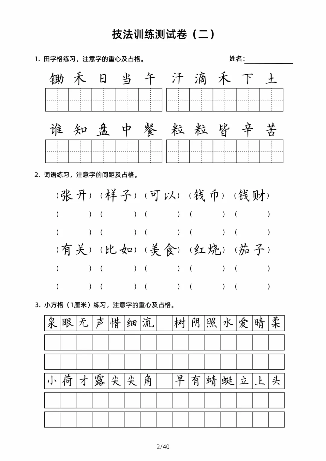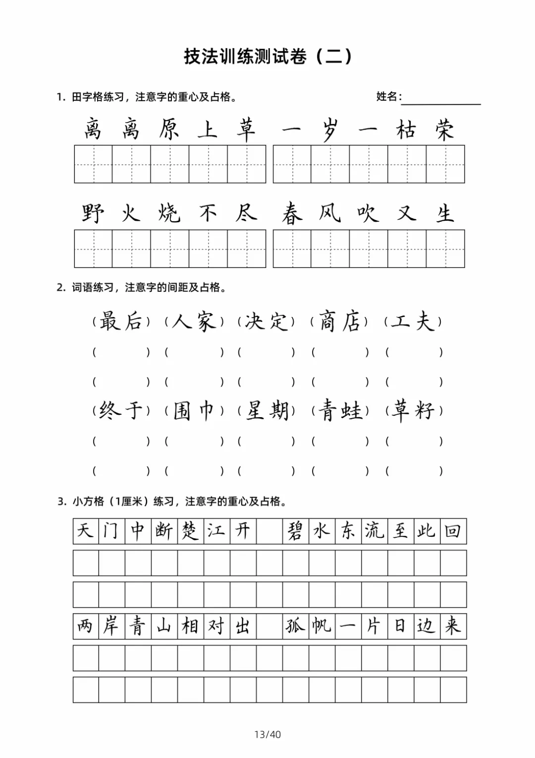硬笔书法规范字技法训练【2】40页高清文档 书法技法训练是一个系统且循序渐进的过程,核心围绕 “笔法、结构、章法” 三大维度展开,需结合科学方法与长期实践。以下从基础准备、核心技法训练、进阶提升三个层面,详细拆解可落地的训练技巧,帮助学习者高效掌握书法要领 。