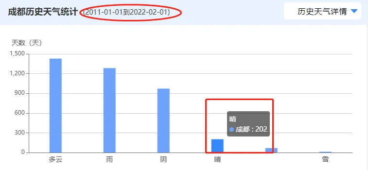 据中国天气网统计,从2011-2022整整11年间,成都只晴了202天。