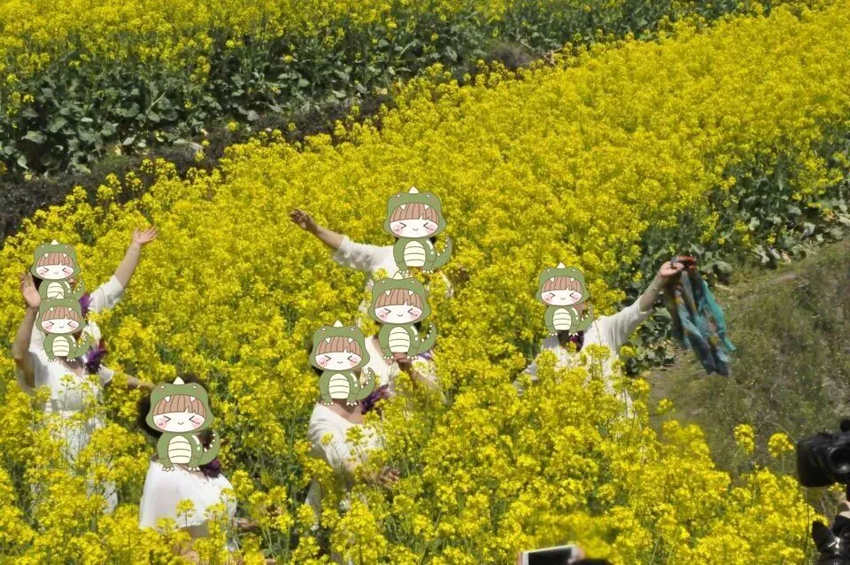 凡是有花的地方就会闪现出漂亮的嬢嬢,看到路边的白玉兰要pie一张,看到田坎头的油菜花要pie一张,就连山上只开了一朵的桃花也要pie一张。
