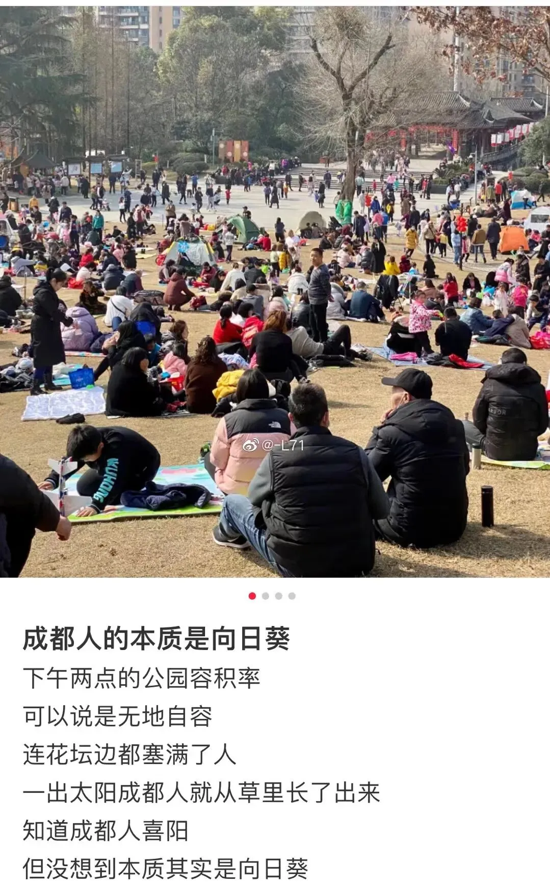 要抓住春天的太阳,就必须提前找到“宽阔的坝坝”,因为成都的太阳好比“渣男”,撩完了就跑。