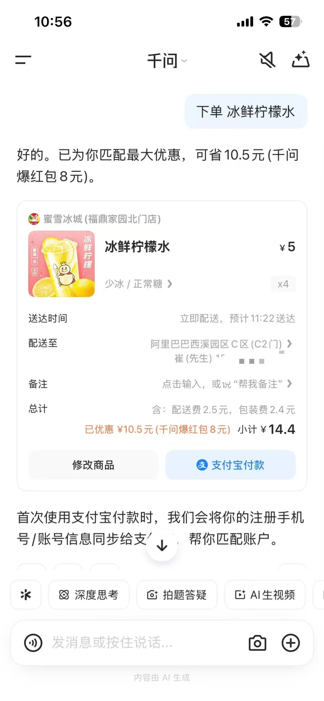 比如之前我去参加阿里千问的发布会,在发布会现场就下单了蜜雪冰城。