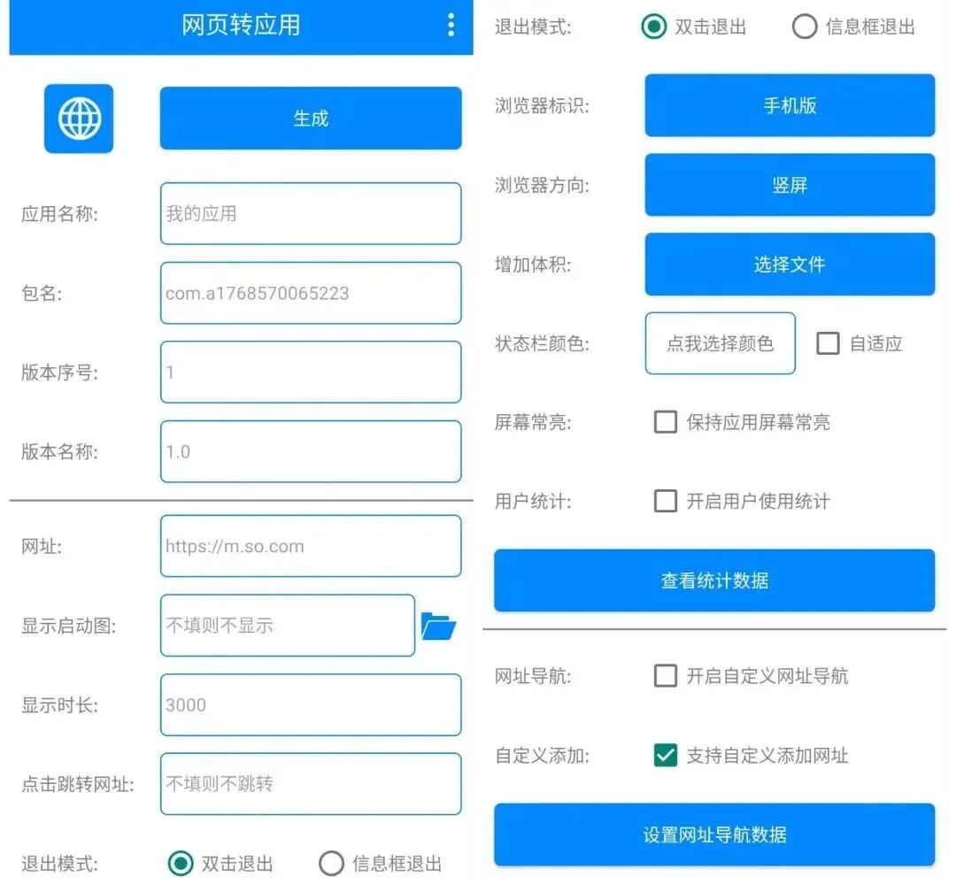 安装完成后,打开应用,你会看到一个简洁明了的操作界面。在应用名称处输入你为这个APP起的名字,让它更具辨识度。如果你对包名、版本序号、版本名称这些专业名词不太了解,也可以忽略它们,使用默认设置即可。最关键的是在网址一栏输入你想要打包的网页地址,这是生成APP的核心内容哦!