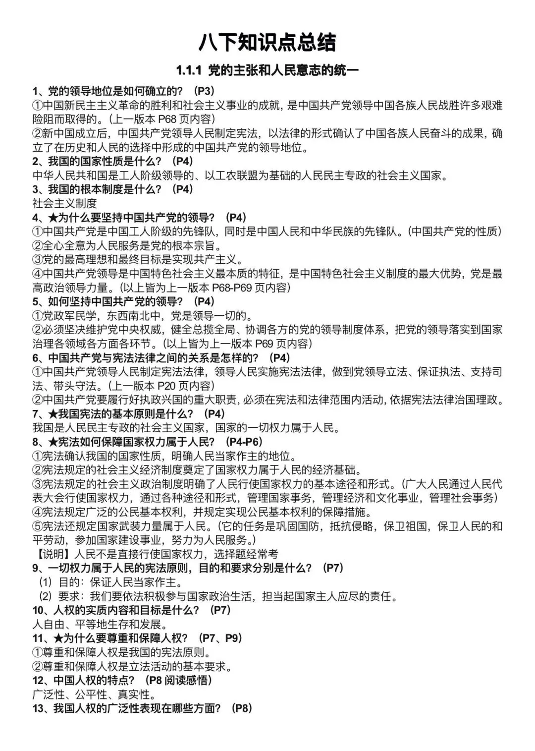 八年级下册道德与法治大总结(电子版可打印)