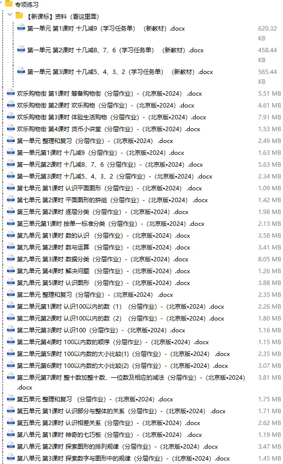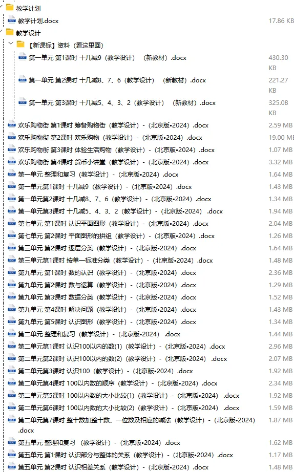 【新教材】2026北京版一年级数学下册 教案+课件+计划+练习+试卷()全册下载