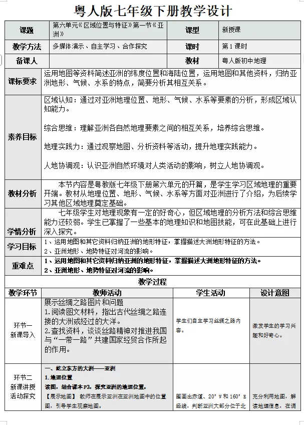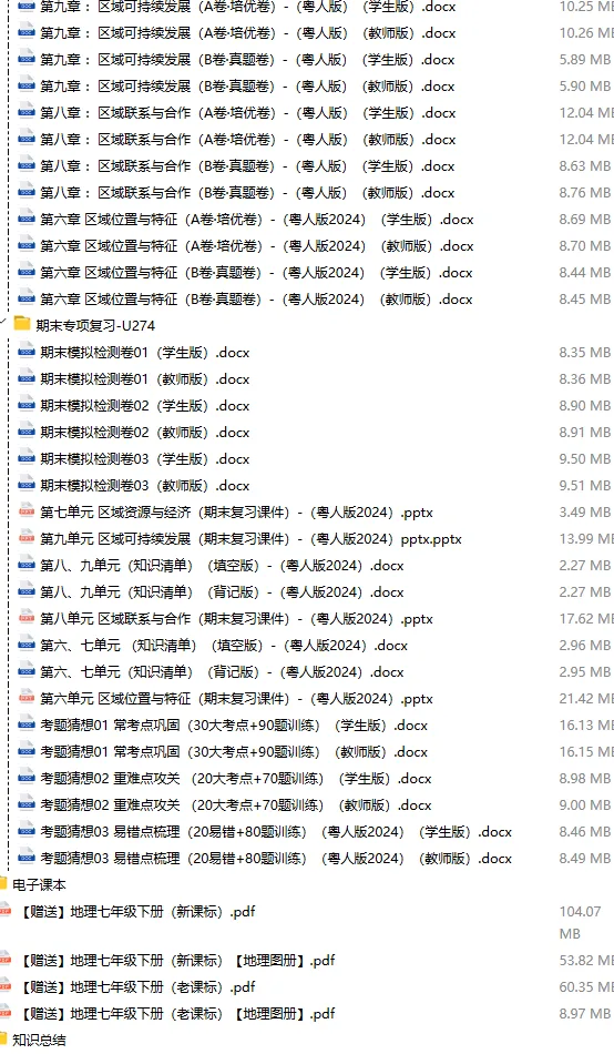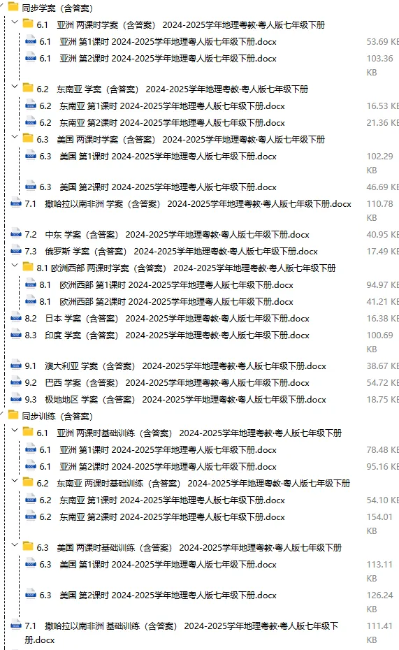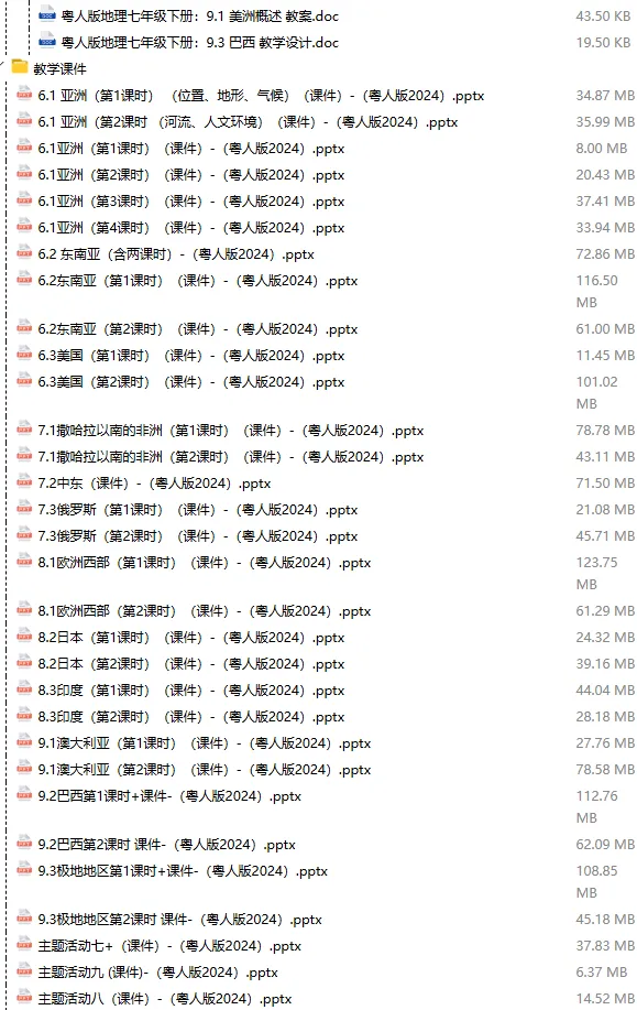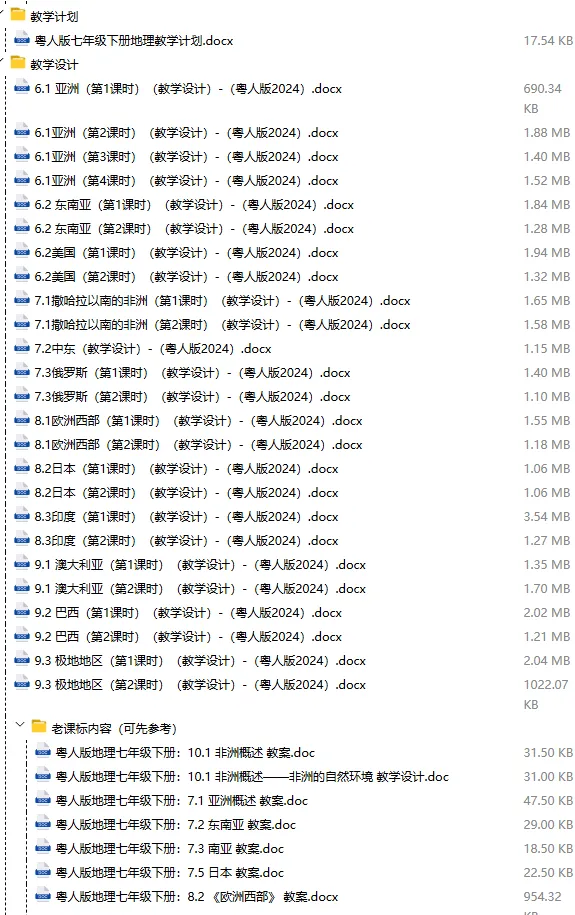 【新教材】2026粤人版七年级地理下册 教案+课件+计划+练习+试卷()全册下载