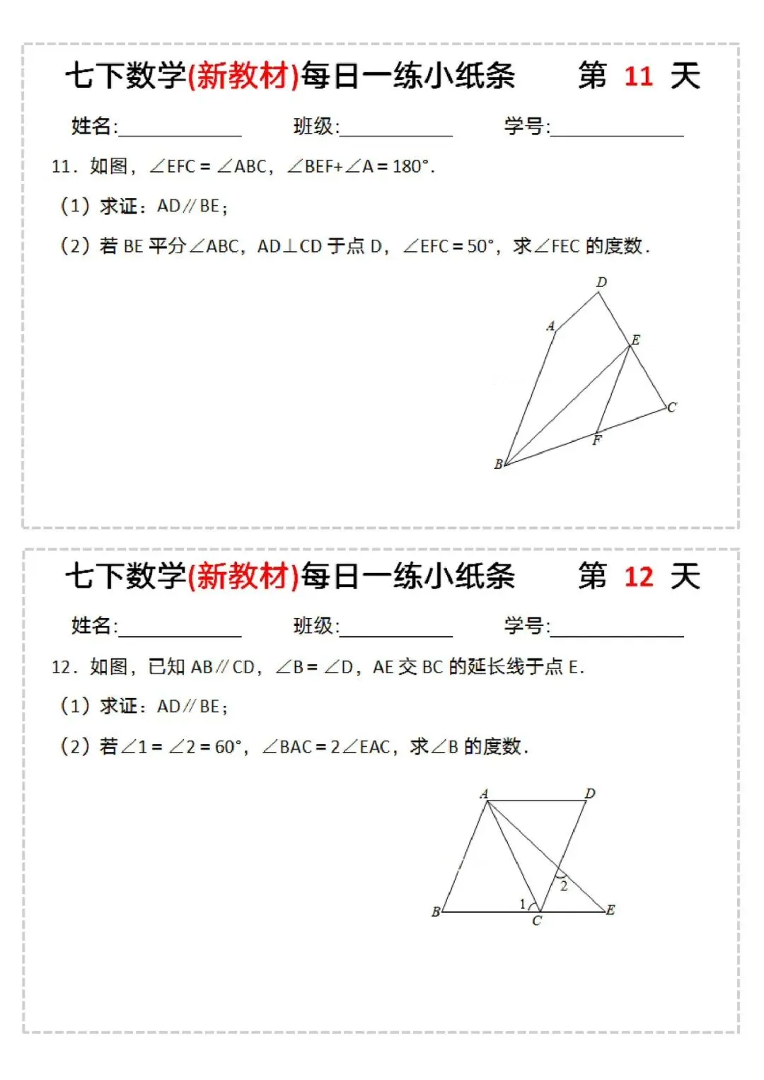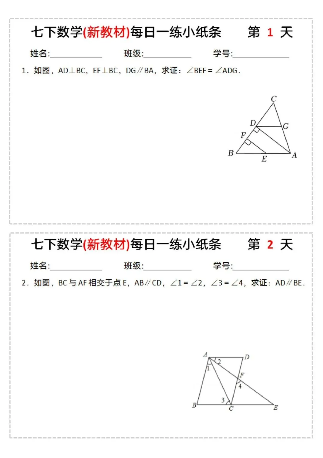 26年七年级下册数学每日一练小纸条(电子版可打印)