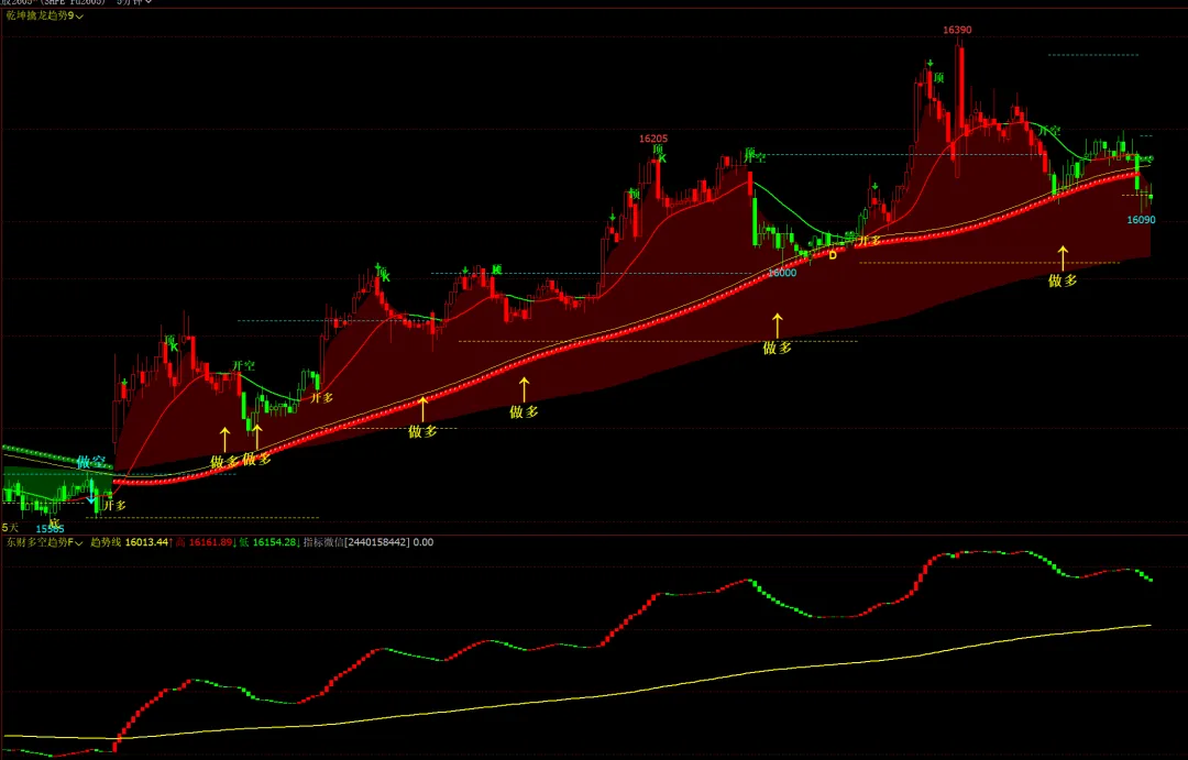 3、乾坤擒龙趋势9主图,东财多空趋势F幅图