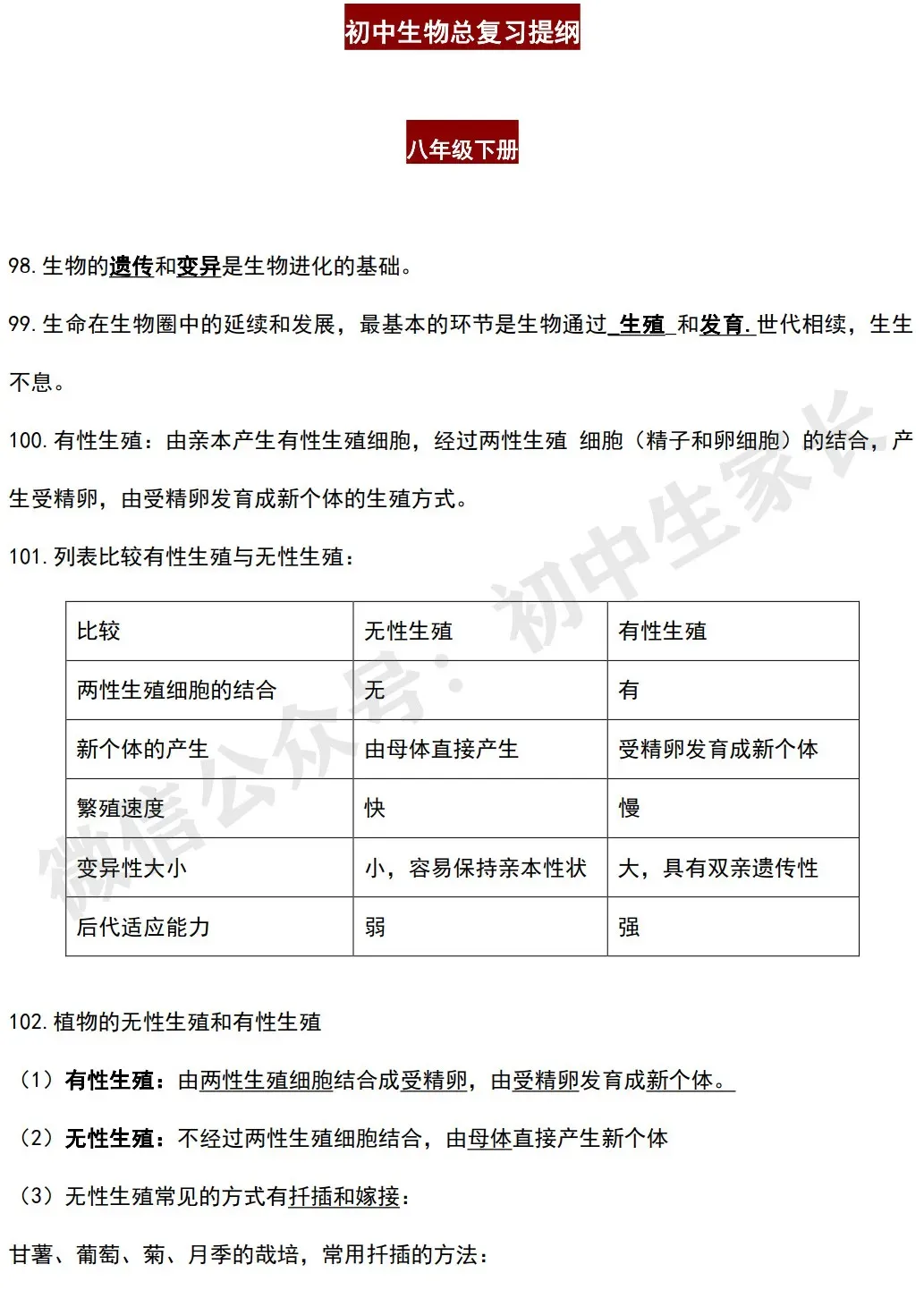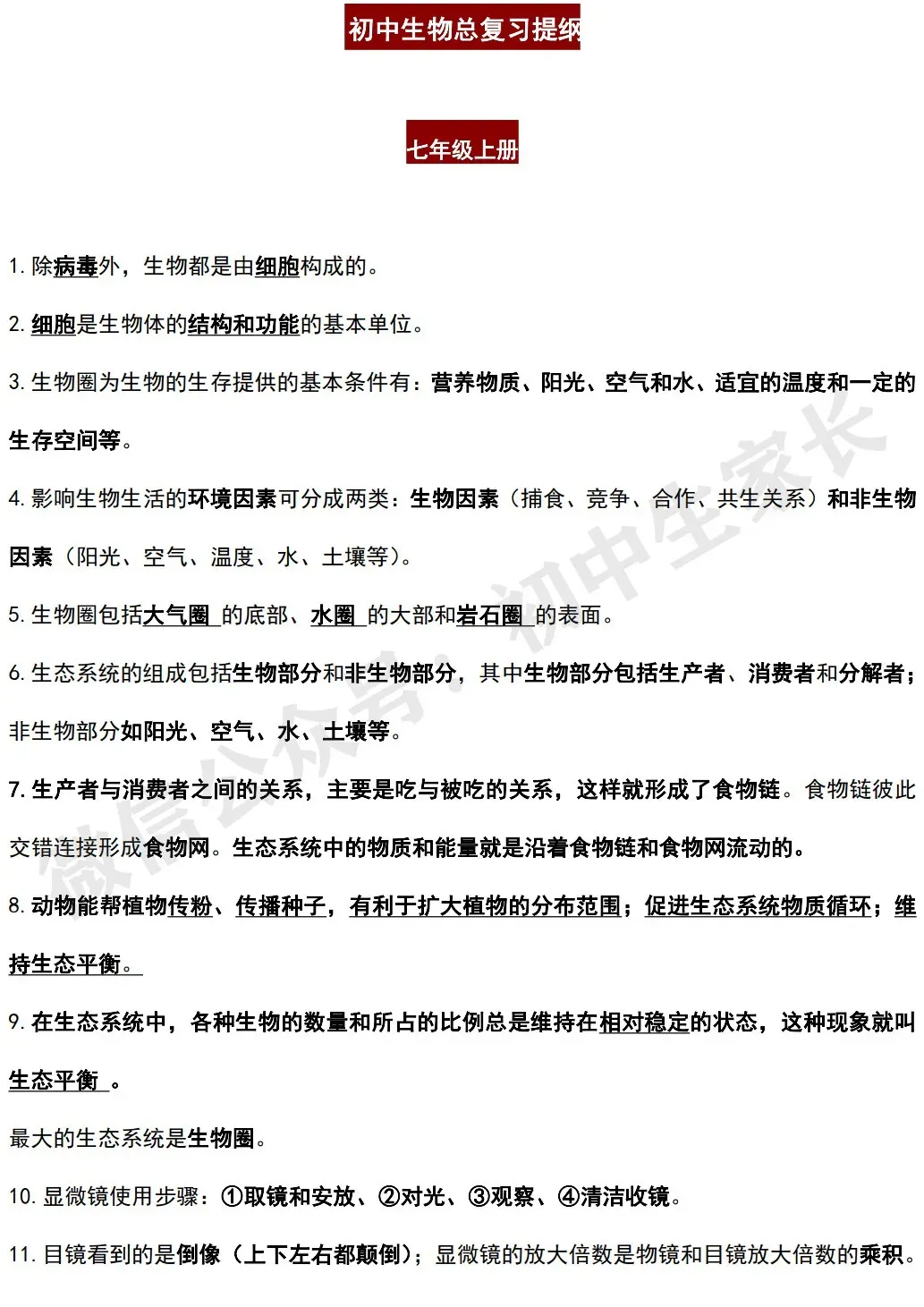 今天老师给大家整理了:初中生物会考知识总结【全四册,17页可打印】超全面。