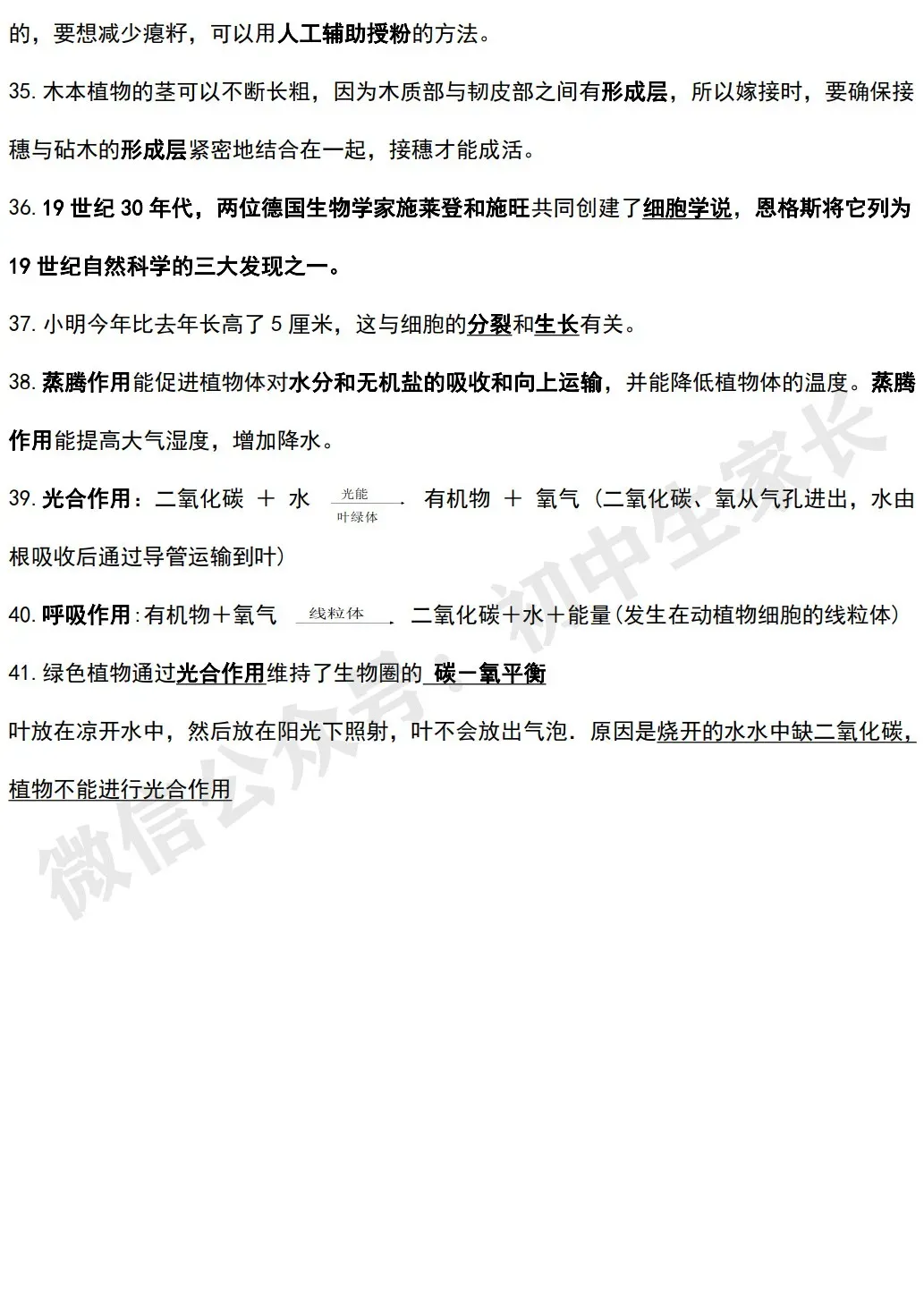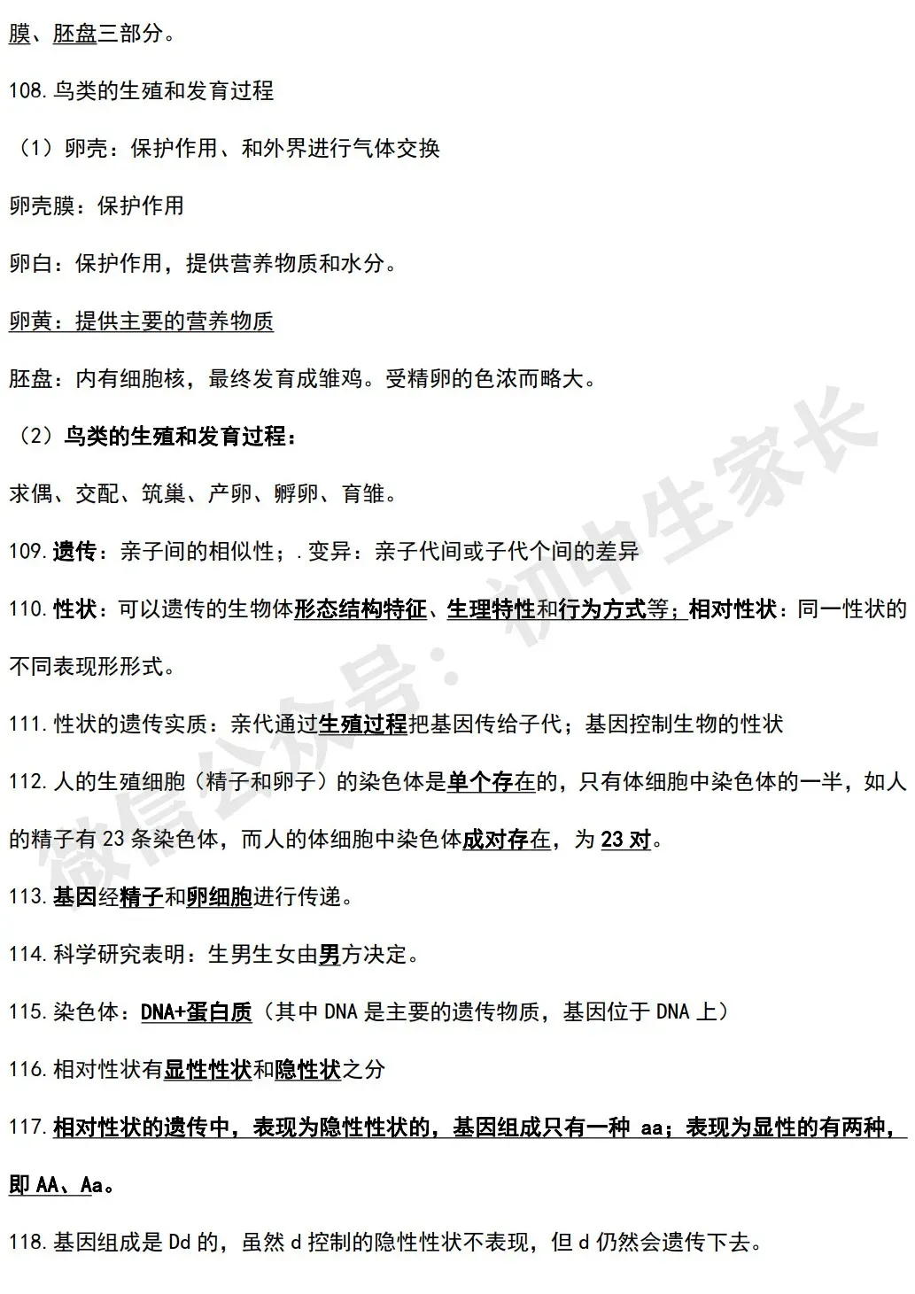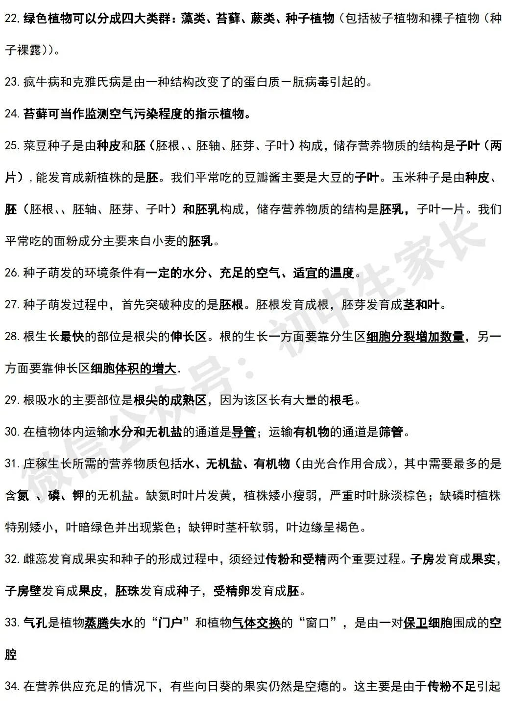 初中生物会考知识总结【全四册,17页可打印】超全面!(转给孩子)