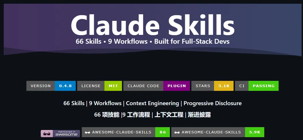 项目完全开源,https://github.com/jeffallan/claude-skills