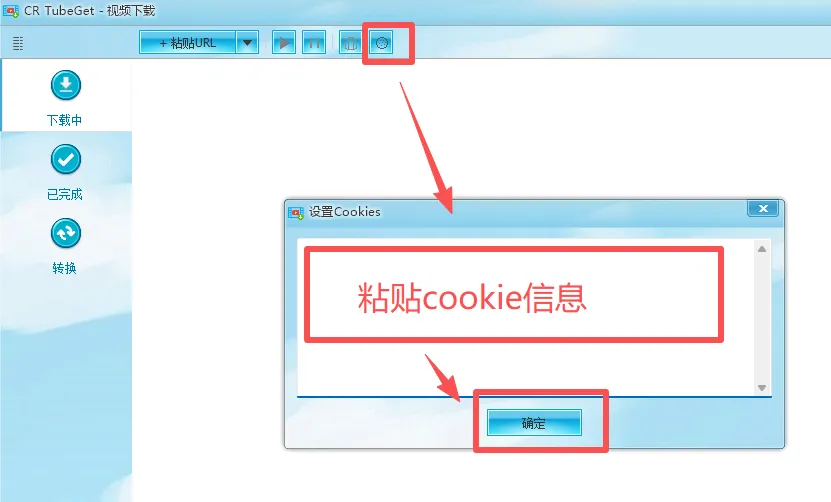 注:如果是主流的国产浏览器,CR GetTube软件基本都支持,可以直接自动识别浏览器cookie。