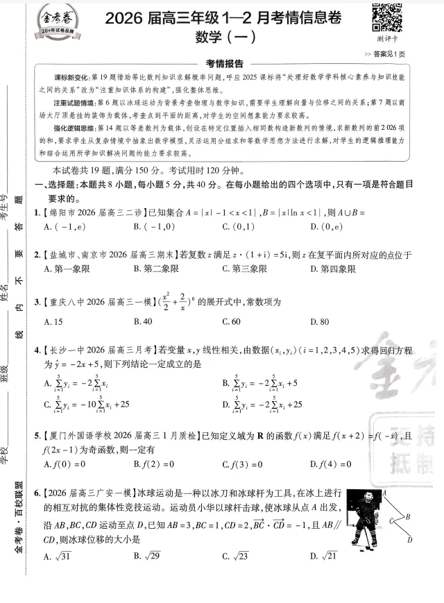 2026版高中《金考卷百校联盟》高考测评卷(数学)