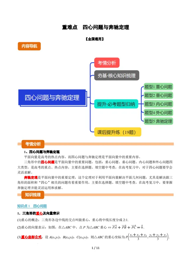 【高中】2026版高考数学《四心问题与奔驰定理5大题型》(电子版pdf)