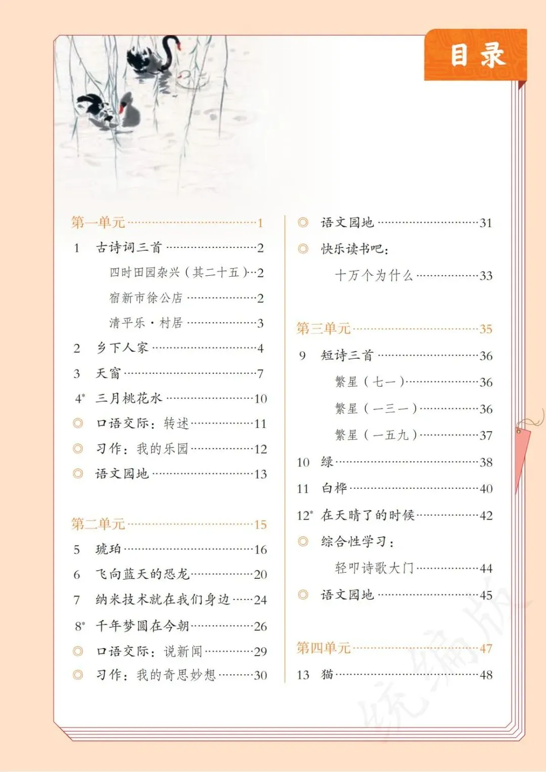 寒假预习|2026春季四年级下册语文电子课本(超清版可下载)仅供参考 今天给同学们整理了部编版四年级下册语文电子课本,有需要的家长可以打印出来给孩子寒假预习。学习贵在积累与应用,非一日之功,望大家能沉心学习,坚持不懈。 免责声明:素材来自网络仅供教学参考,版权归著作者,若侵联系即删。