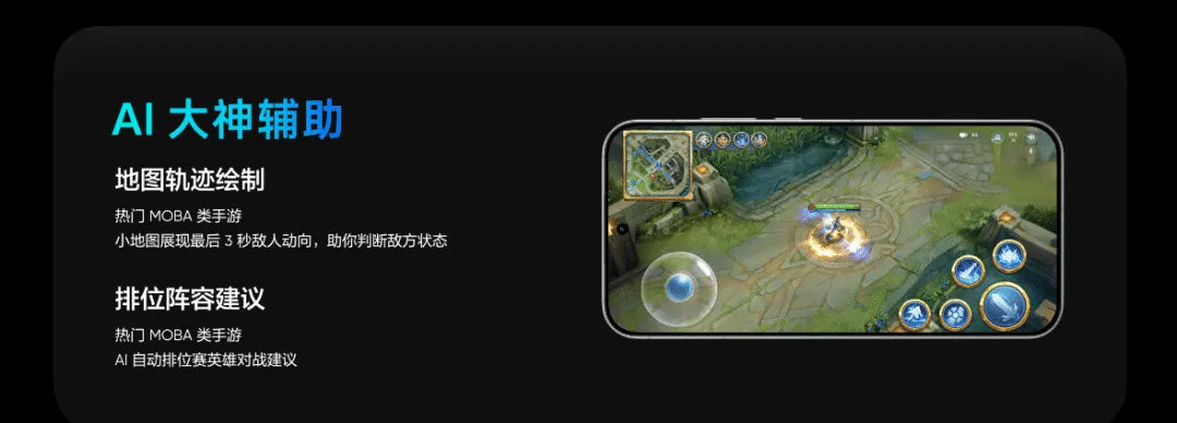 此外,针对游戏玩家,realme UI 7.0搭载全新升级的AI大神辅助,提供敌方英雄轨迹预测和排位阵容建议,让用户的上分之路,如有神助。AI构图大师、AI人像补光、AI写作、AI录音等一系列智慧功能,也让手机在更多日常场景下变得更智能、更实用。