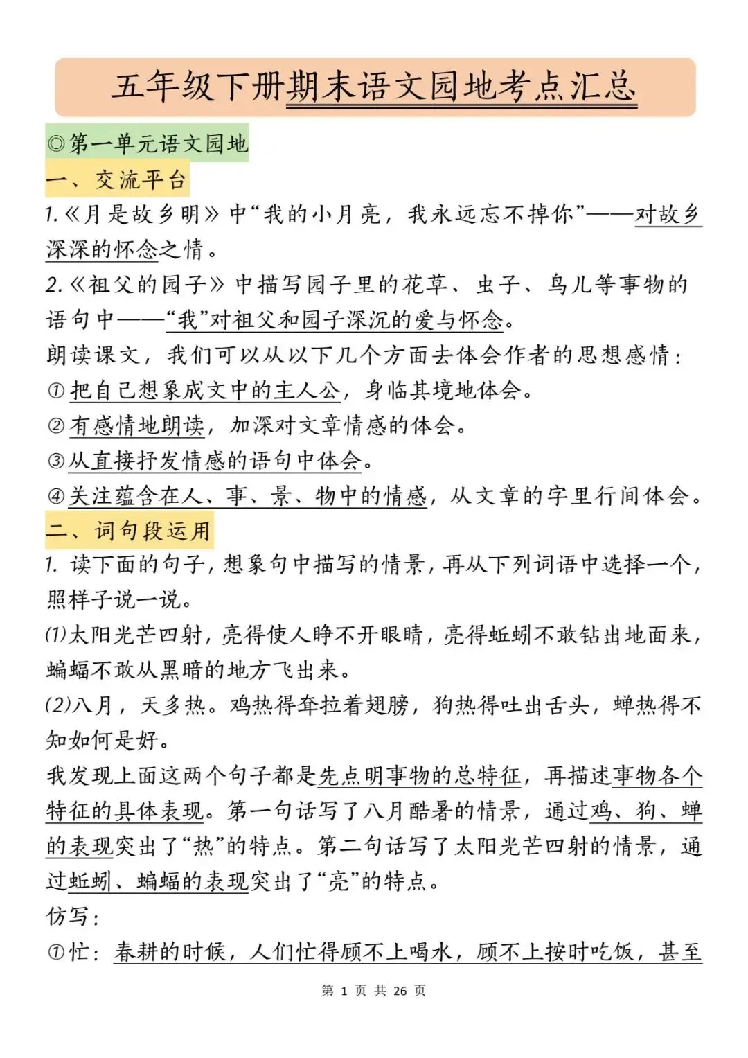 五年级家长速进!孩子期末复习语文没头绪,语文园地知识零散难掌握?别慌!我们整理了五年级下册语文期末语文园地知识汇总。